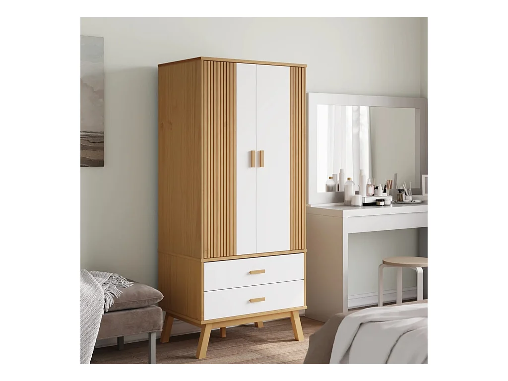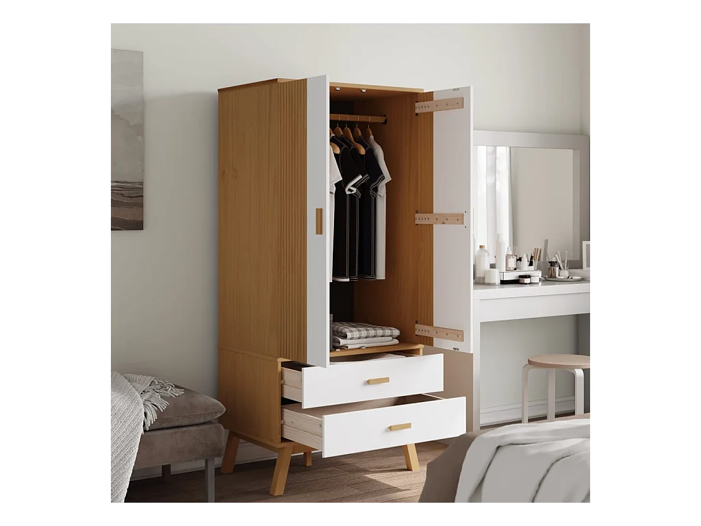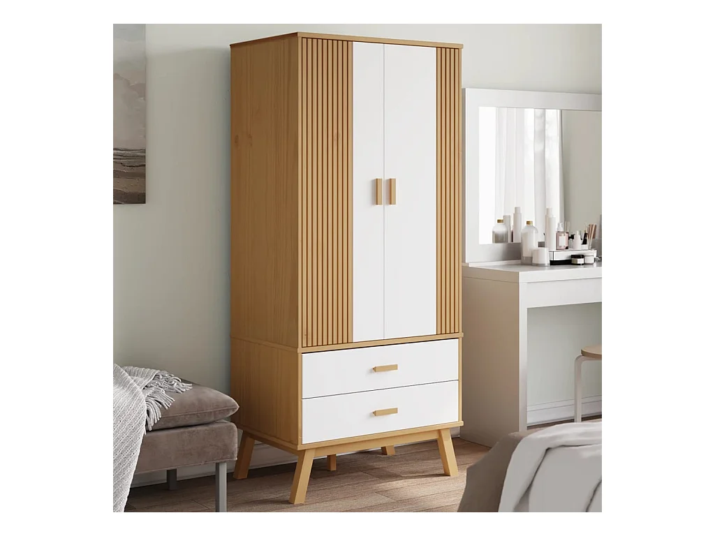 Garde-robe OLDEN blanc et marron 76,5x53x172 cm bois massif pin FR252837