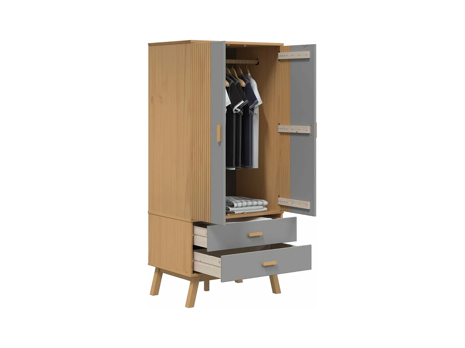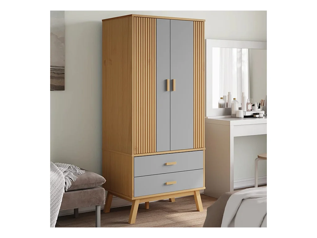 Garde-robe OLDEN gris et marron 76,5x53x172 cm bois massif pin FR996624