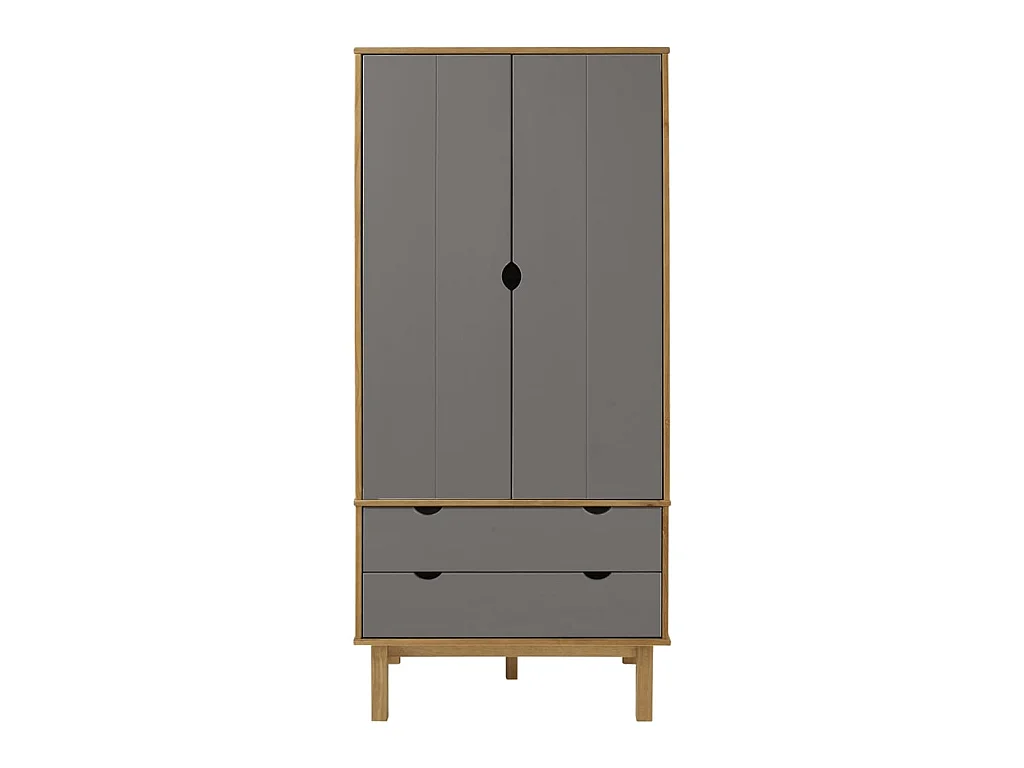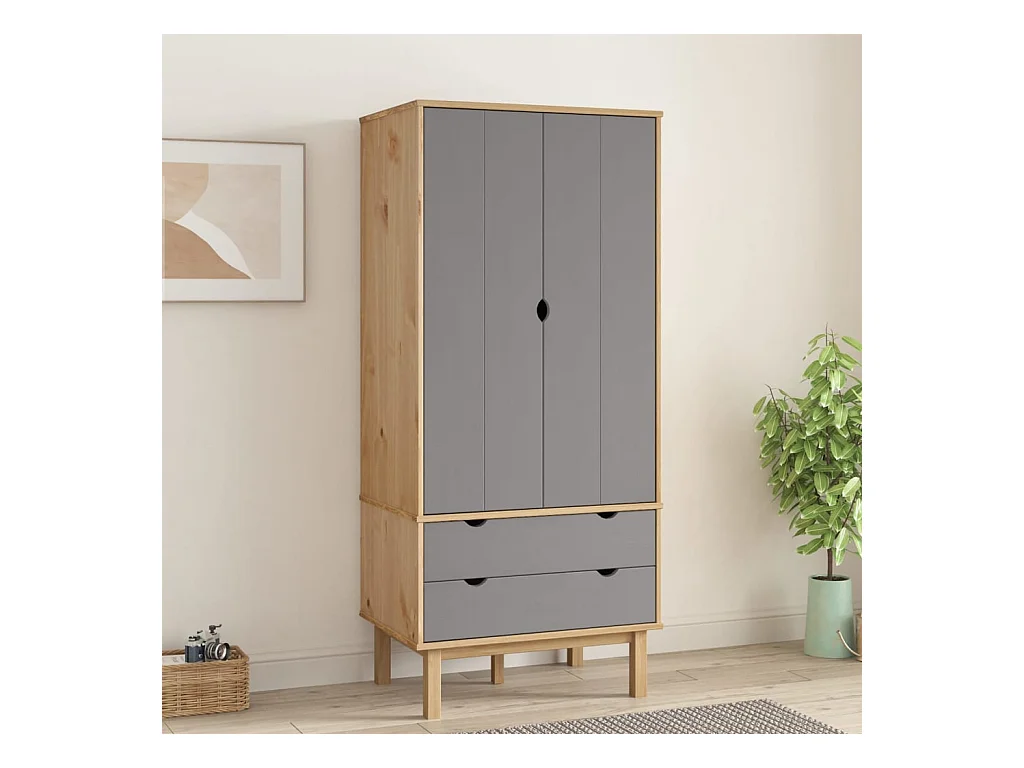 Garde-robe OTTA Marron et gris 76,5x53x172 cm Bois massif pin OFR61164 BonneVie Meuble
