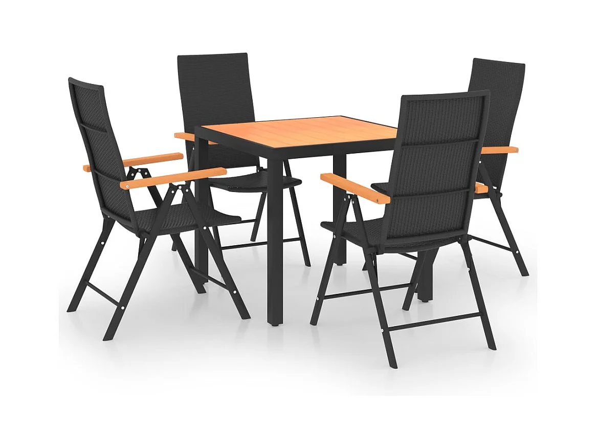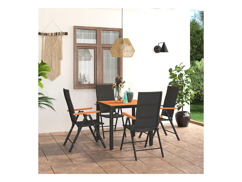 Garden Furniture - Ensemble à manger de jardin 5 pcs noir et marron