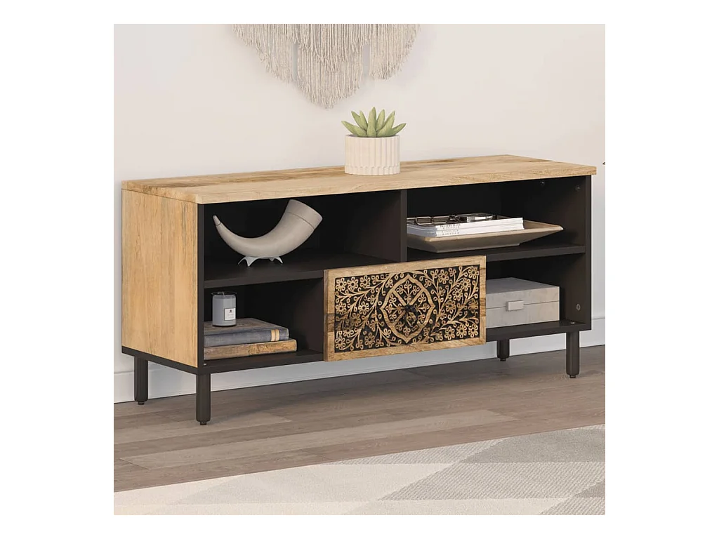 Mordan Meuble TV 100x33x46 cm bois de manguier et d'ingénierie