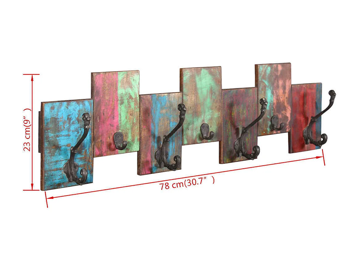 Garden Furniture - Porte-manteau avec 7 crochets Bois massif de récupération