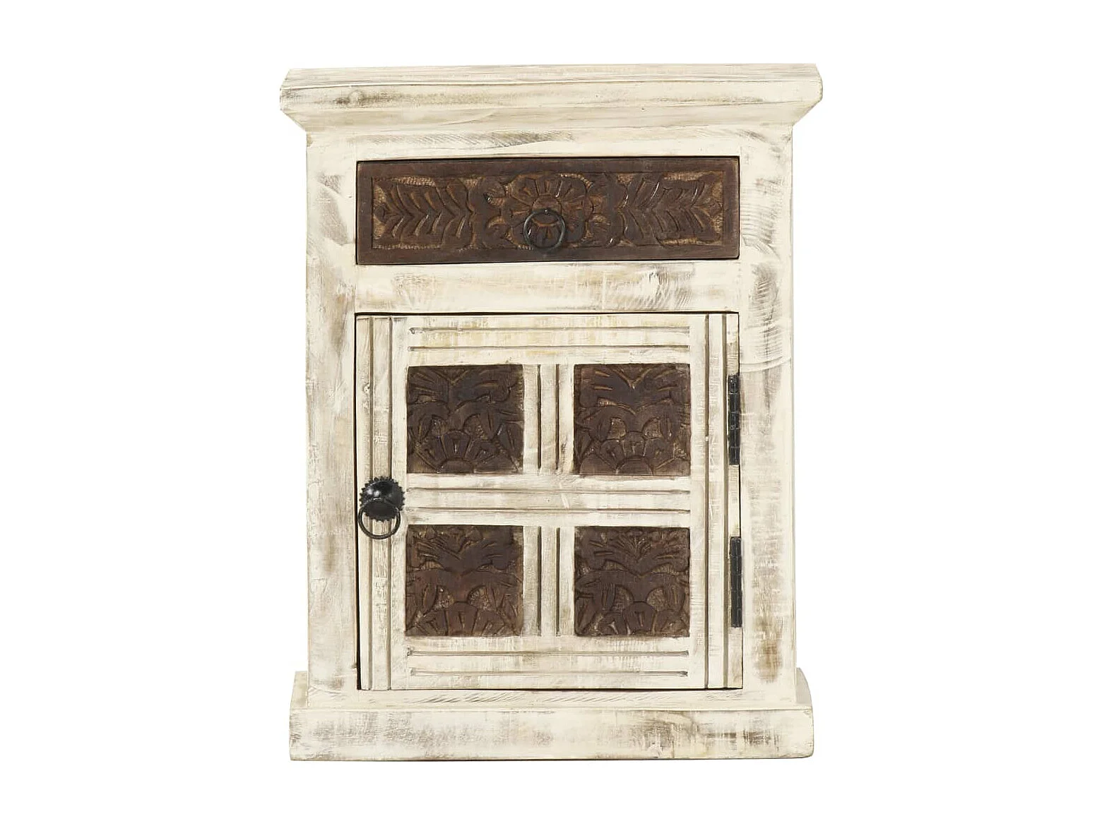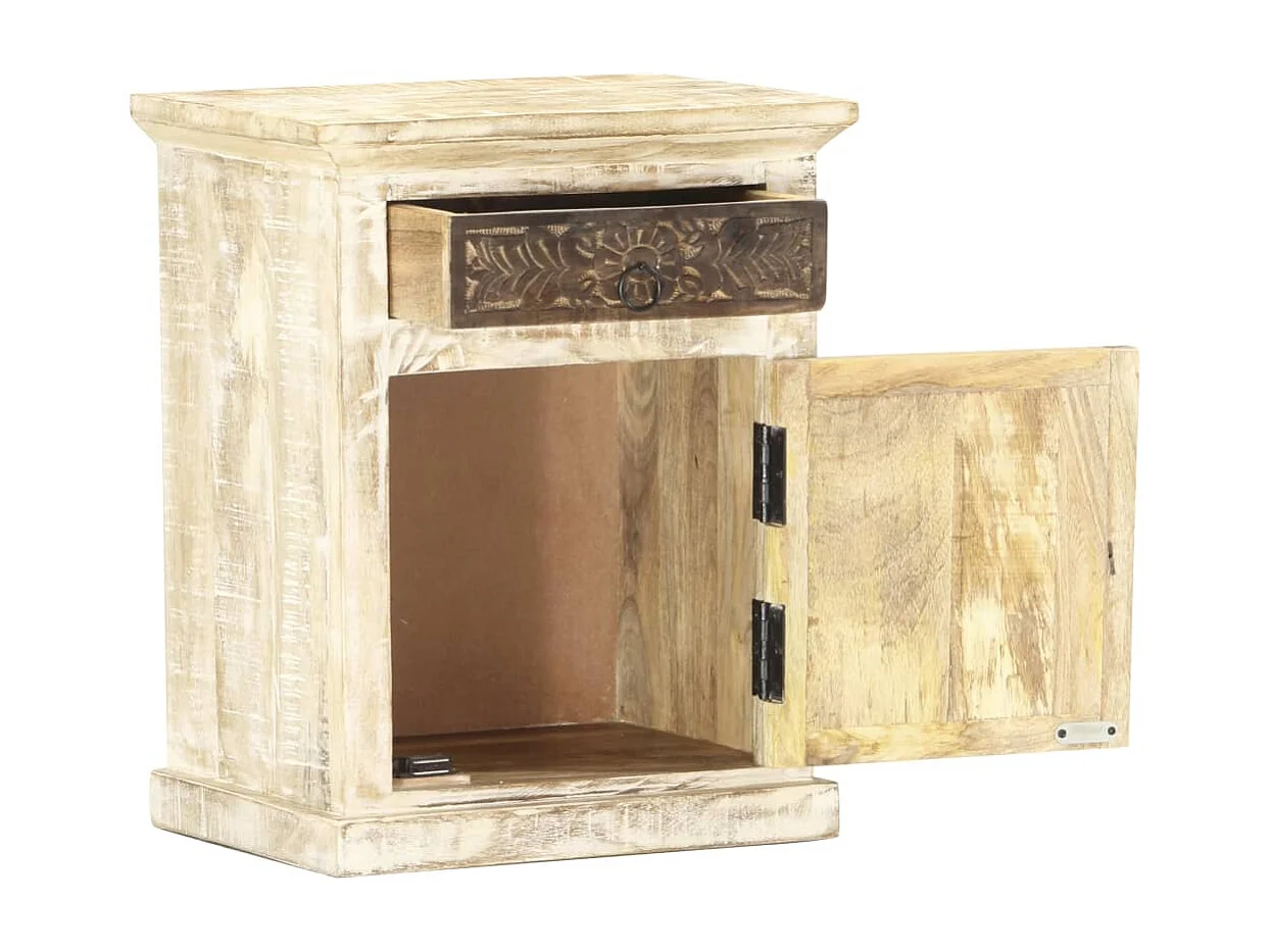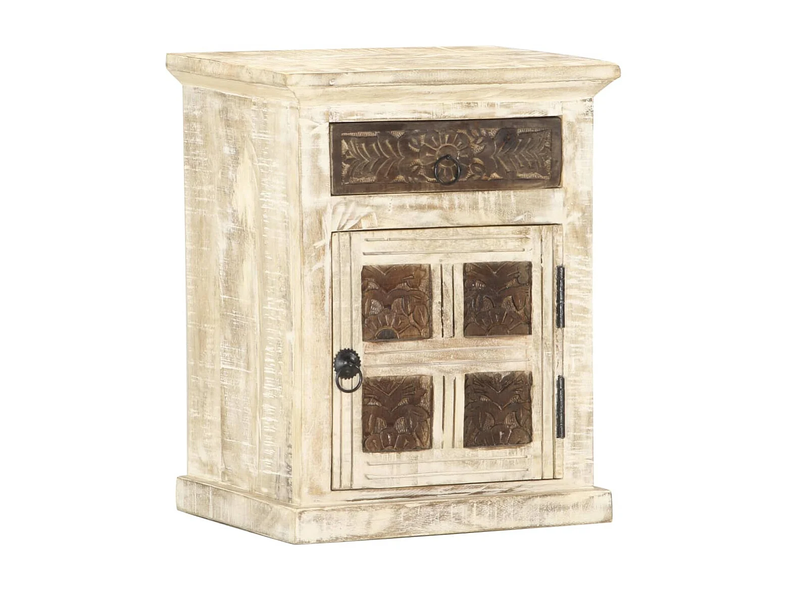 Garden Furniture - Table de chevet Blanc 40 x 30 x 50 cm Bois de manguier massif