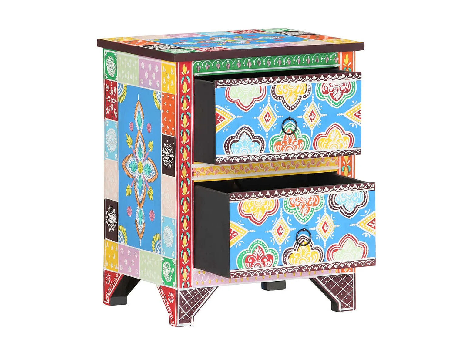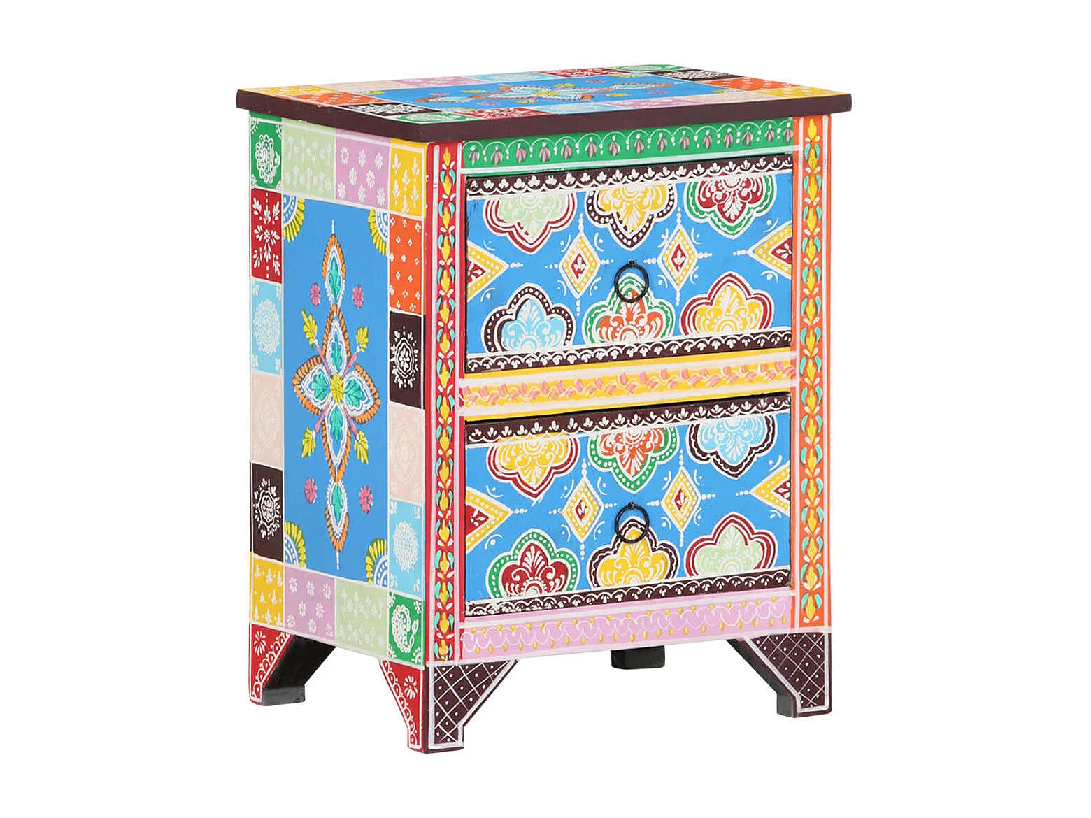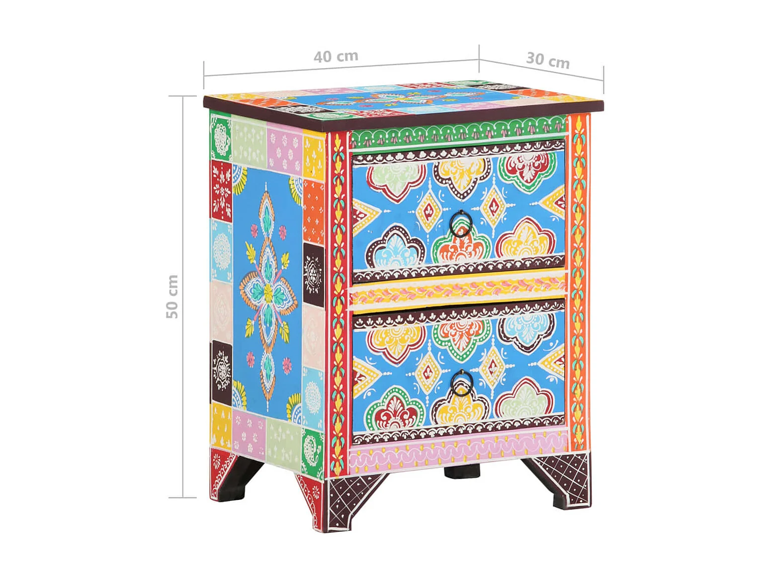 Garden Furniture - Table de chevet peinte à la main 40x30x50 cm Bois de manguier