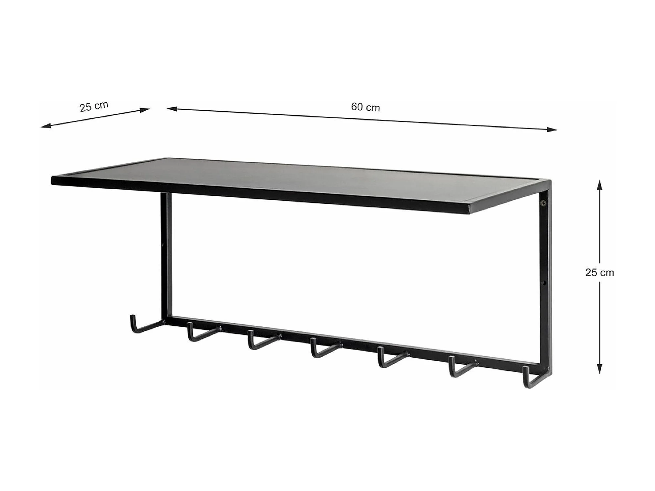 Garderobe murale, Patère murale en métal coloris noir -longueur 60 x profondeur 25 x hauteur 25 cm