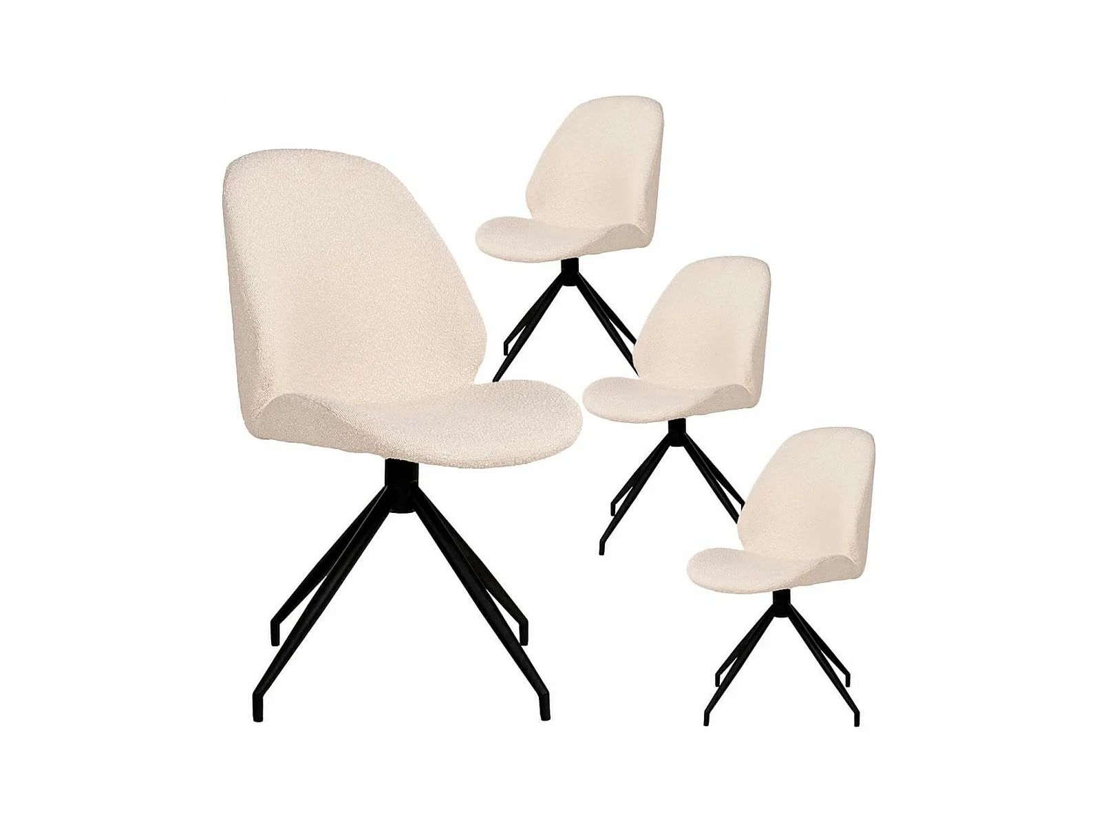 GAYA - Lot de 4 Chaises Incurvées Pivotantes Tissu Chiné Ivoire