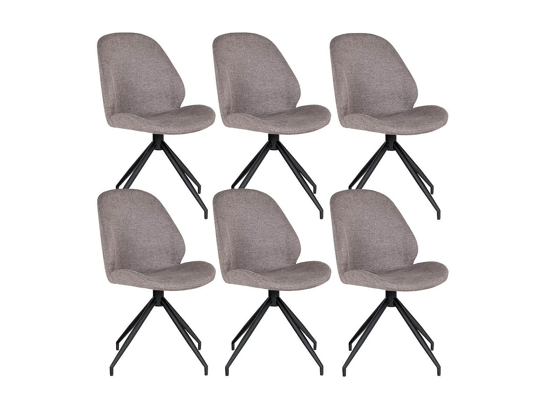 GAYA - Lot de 6 Chaises Incurvées Pivotantes Tissu Chiné Taupe