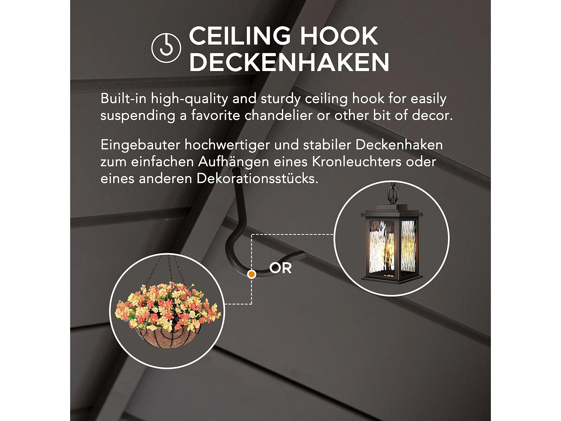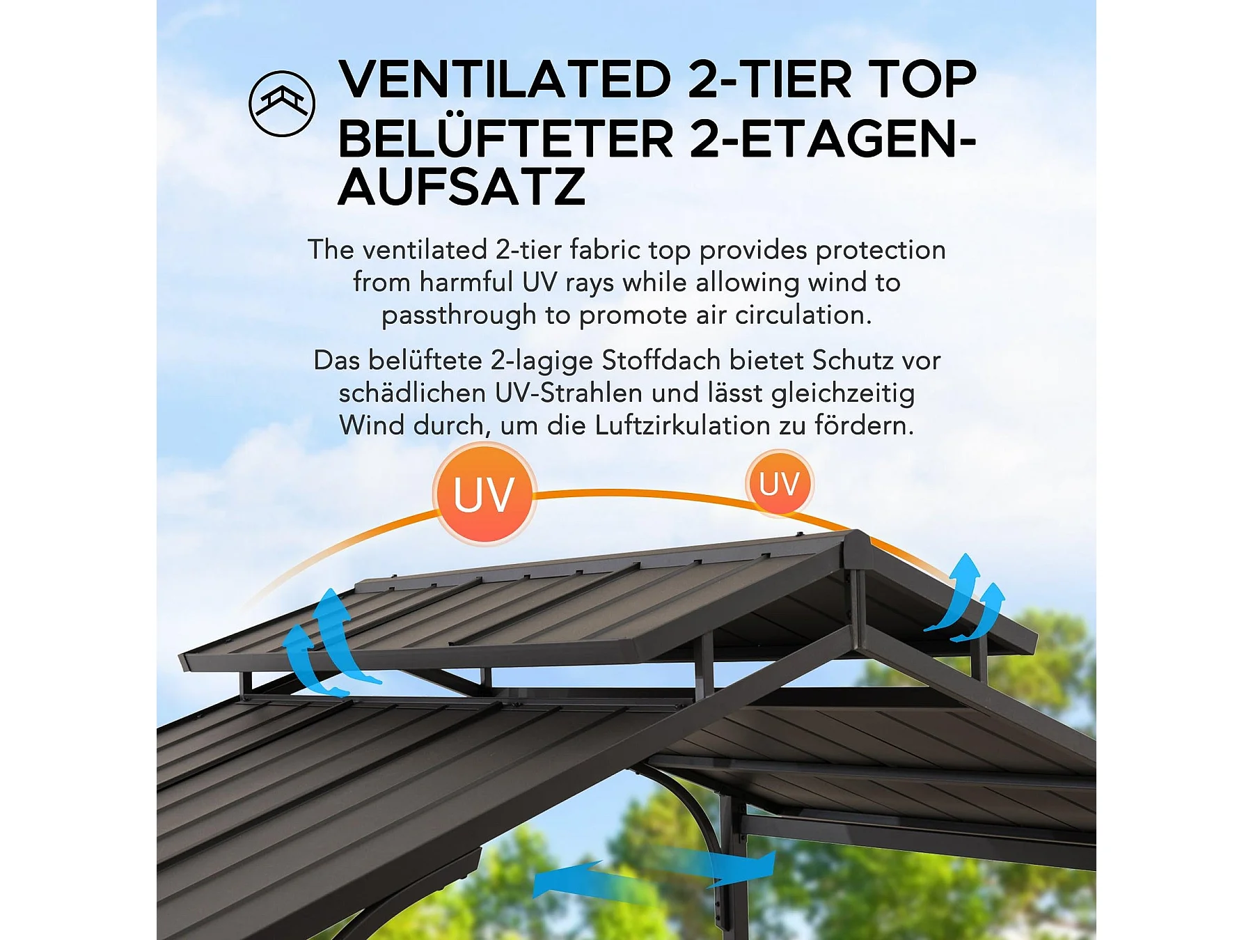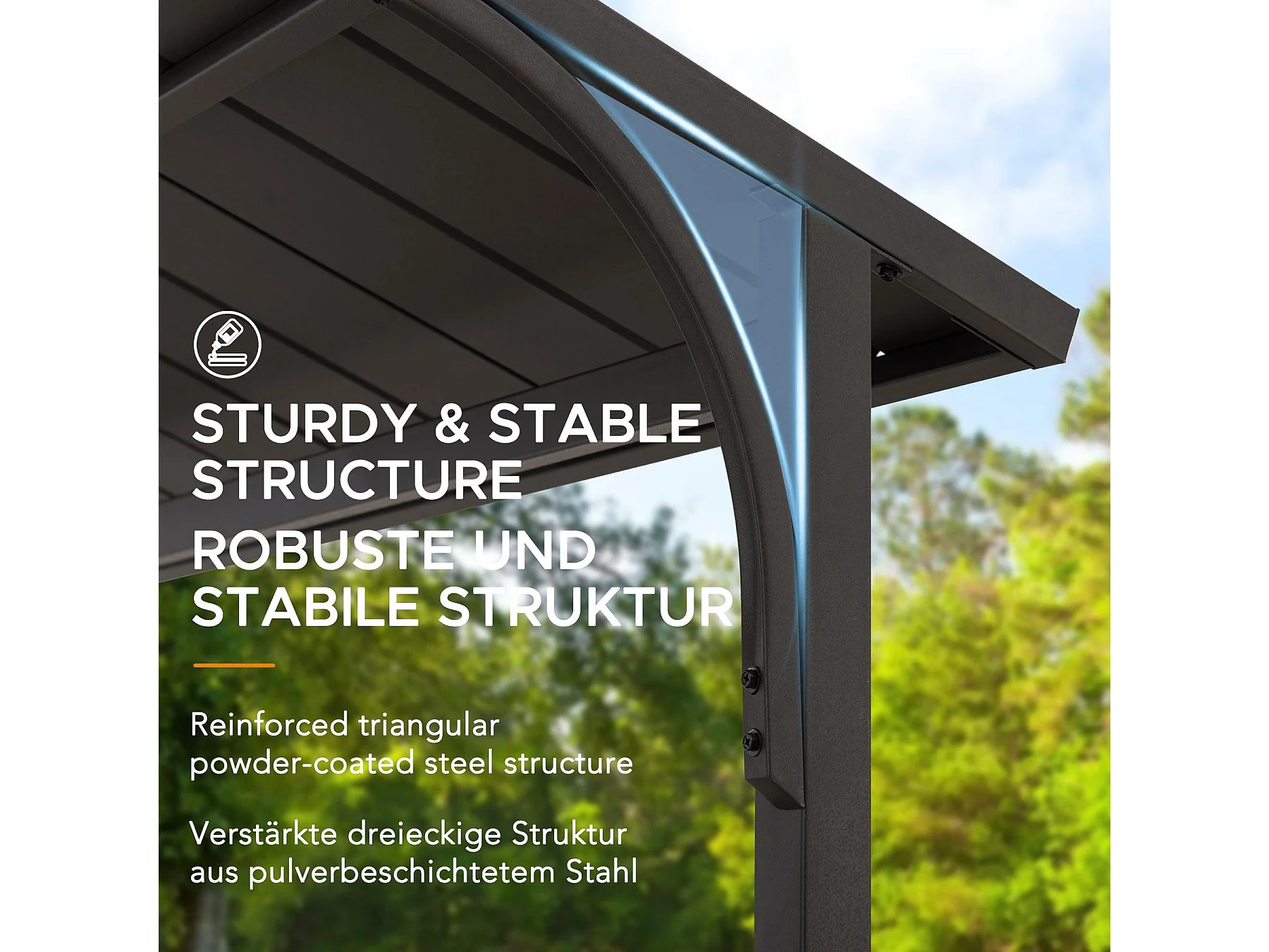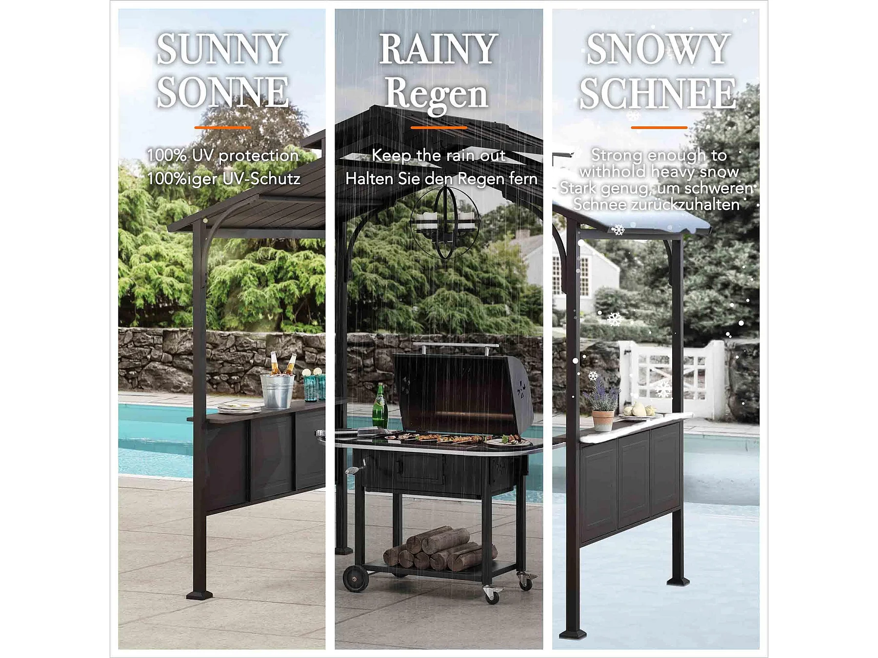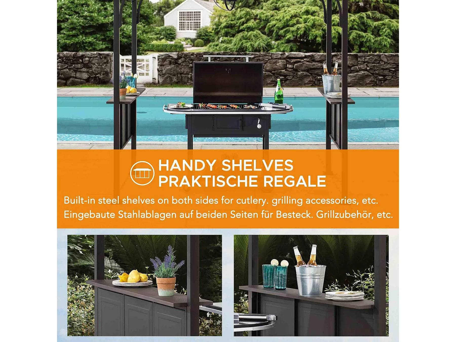 Gazebo de jardin à toit rigide avec crochet de plafond et étagères de bar ASPE 152 cm x 244 cm