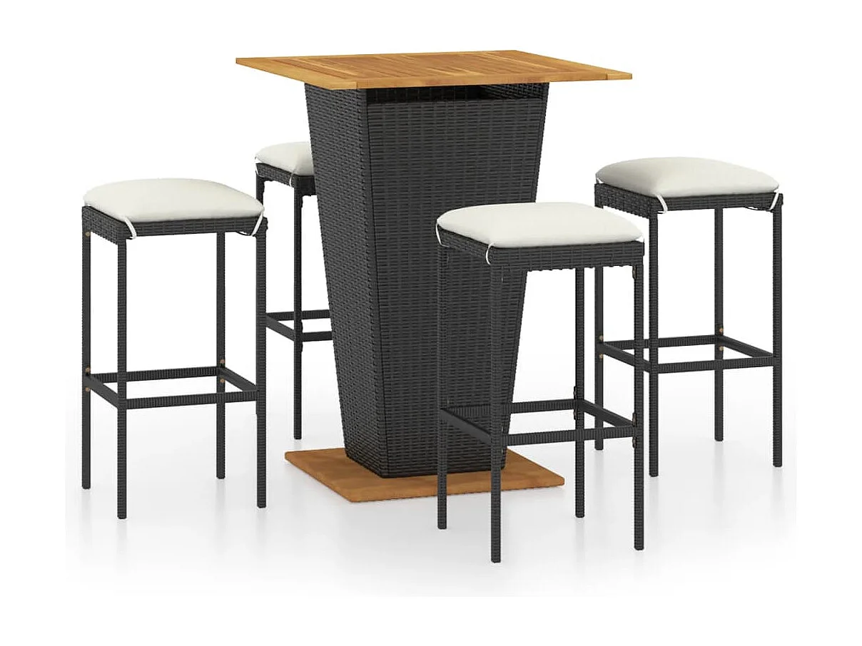 Gela Ensemble de bar de jardin 5 pcs et coussins Résine tressée Noir