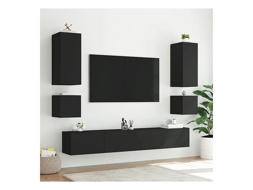 Gerben Meuble TV mural avec lumières LED noir 40,5x35x80 cm