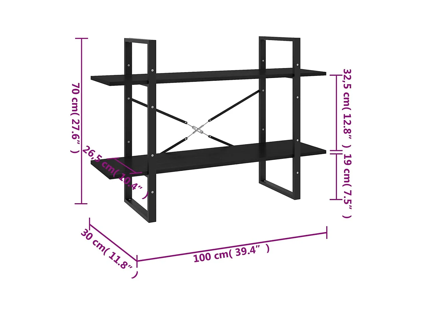 Vista Bibliothèque à 2 niveaux Noir 80x30x70 cm bois d'ingénierie