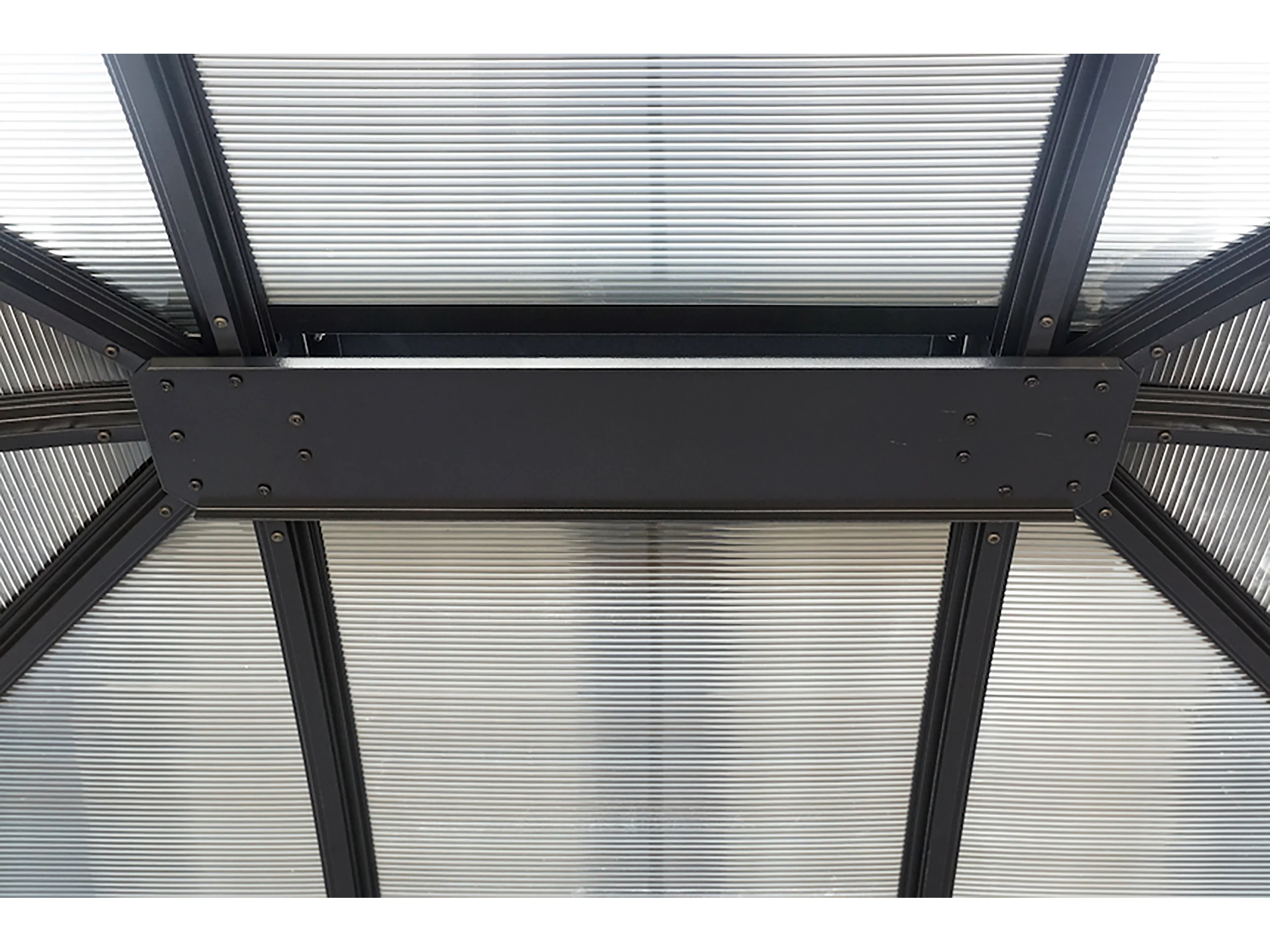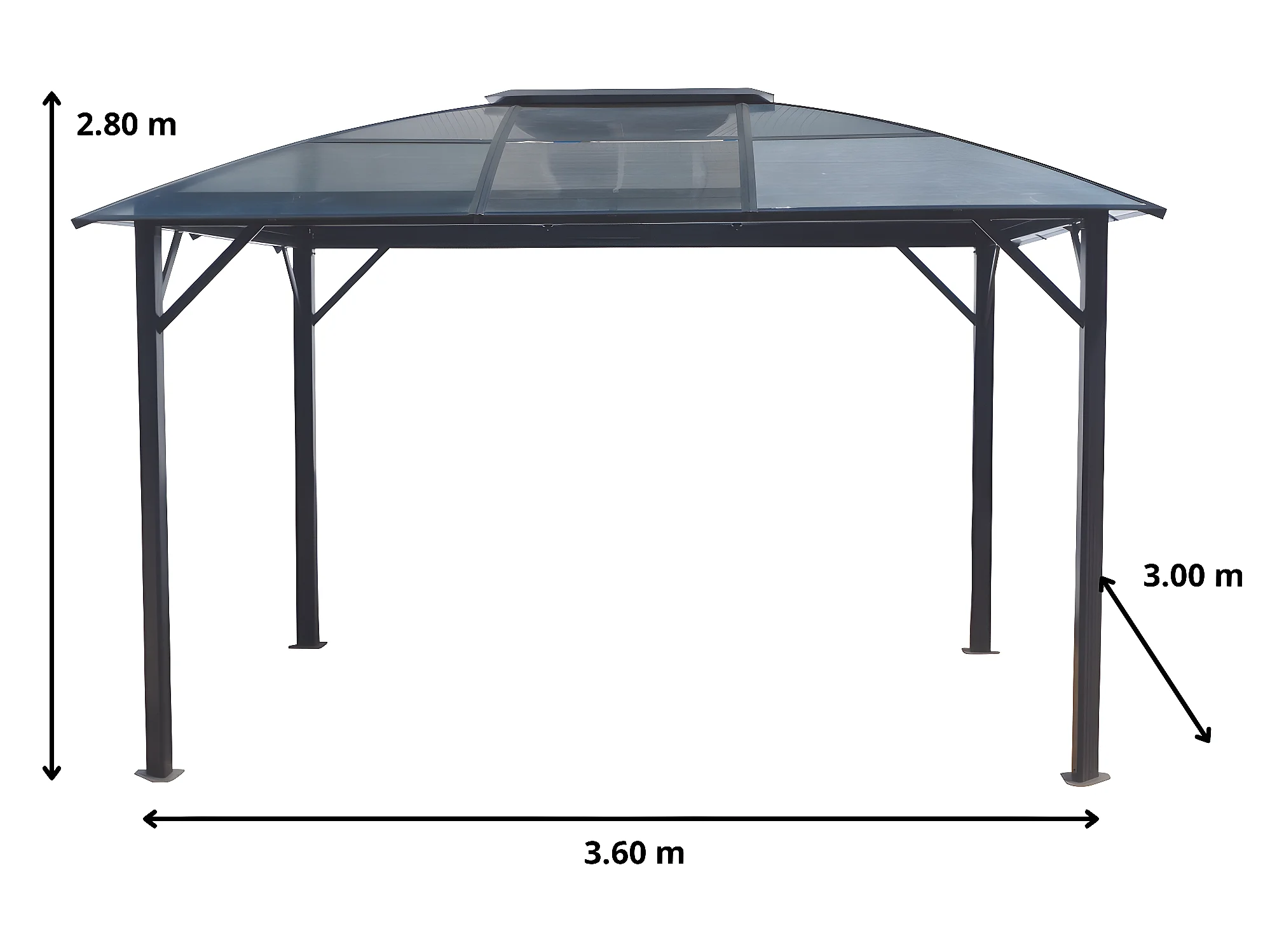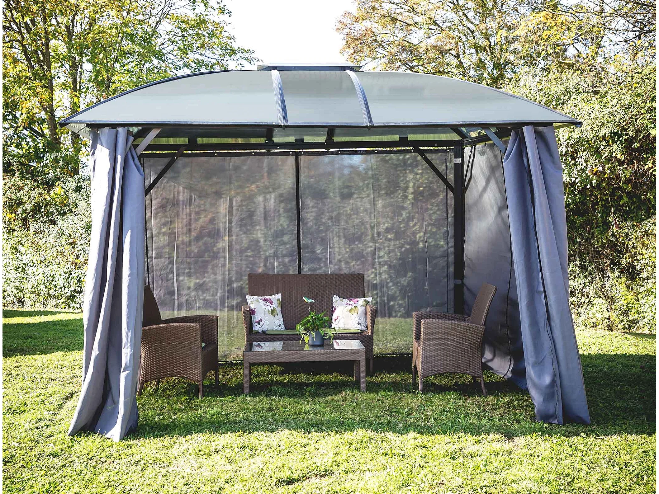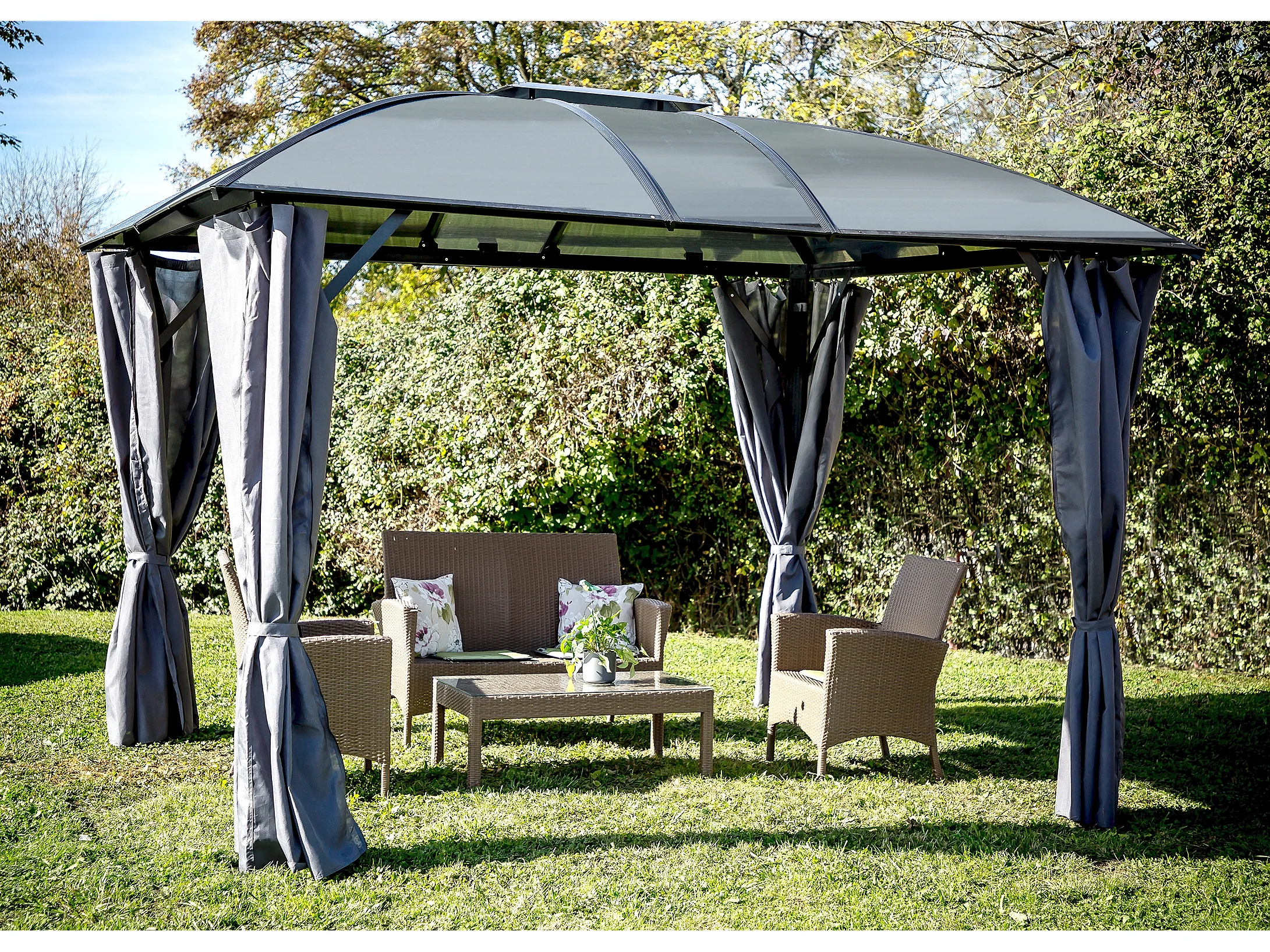 GL3630.AL-Gloriette aluminium avec rideaux toit 4 pentes coloris gris anthracite