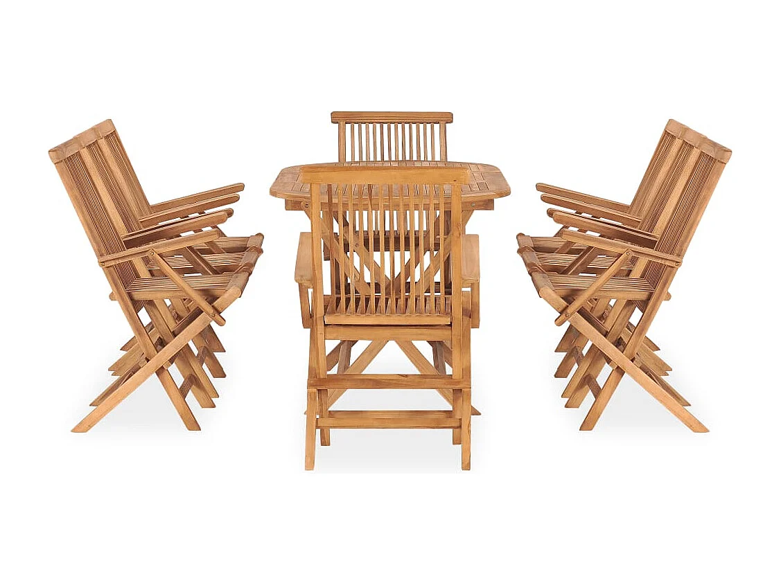 Glabbeek Ensemble à manger d'extérieur pliable 9 pcs Bois solide de teck