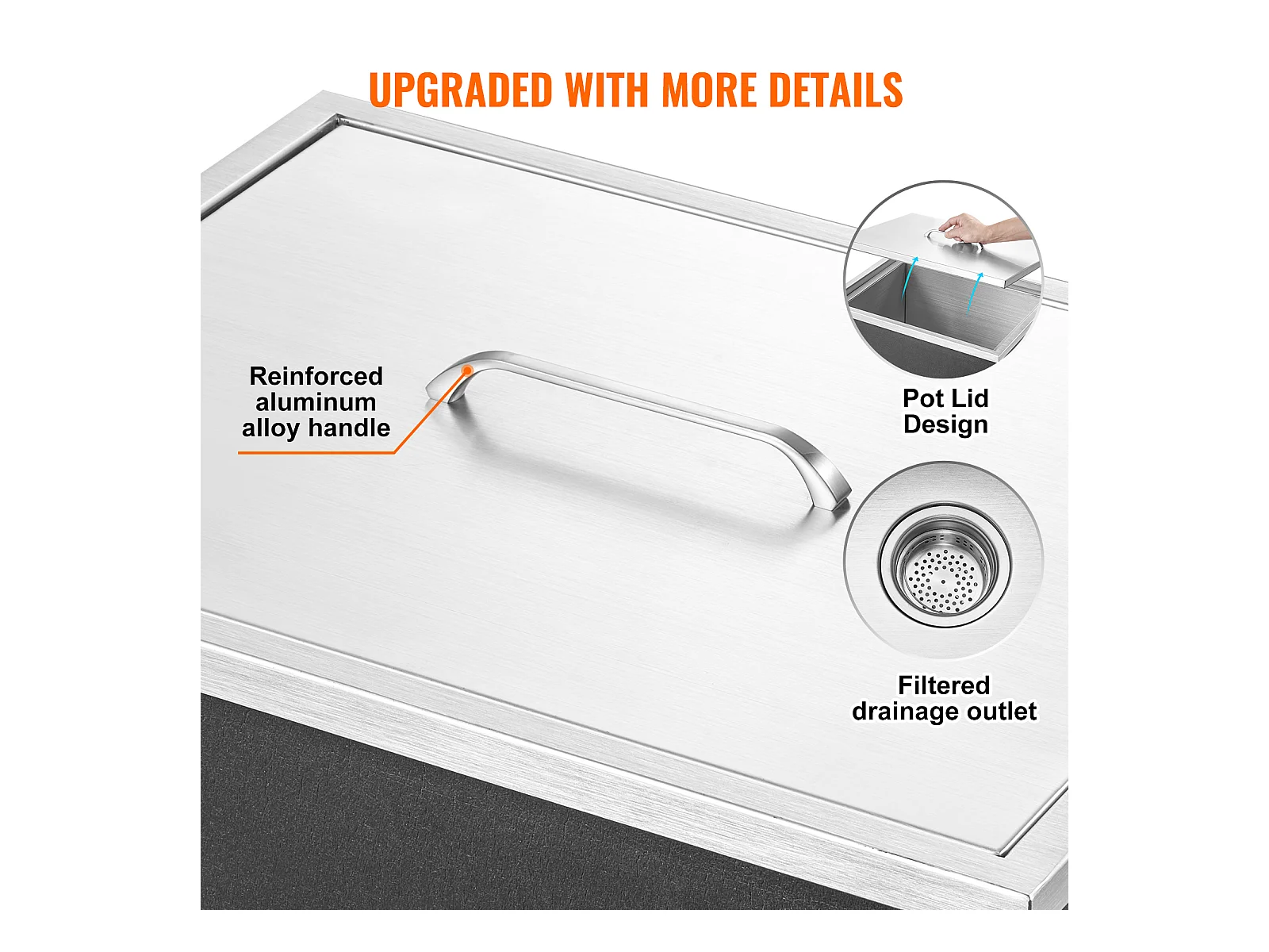 Glacière à Encastrer SucceBuy, 53 x 43 x 46 cm, Bac à Glaçons en Acier Inoxydable avec Couvercle, Bar à Glace de Cuisine Extérieure