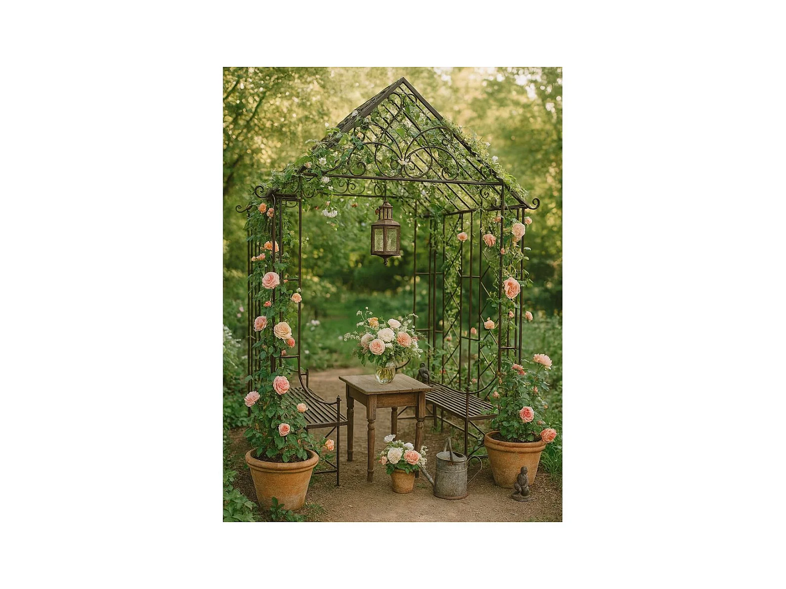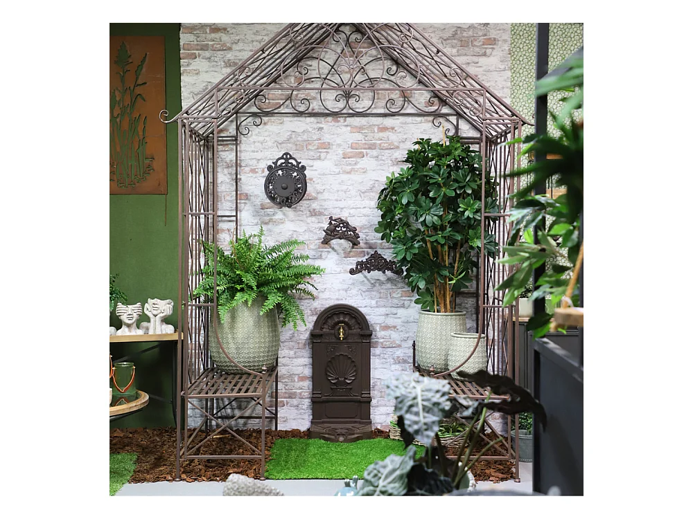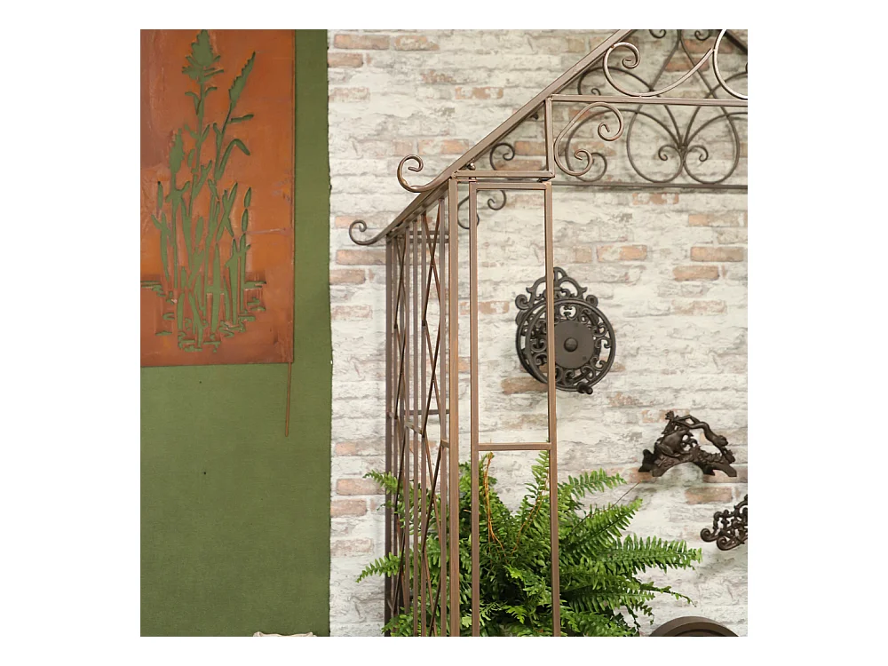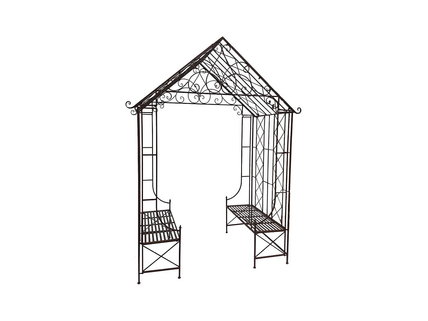 Gloriette kiosque maison abri banc jardin fer marron 200x114x270 cm