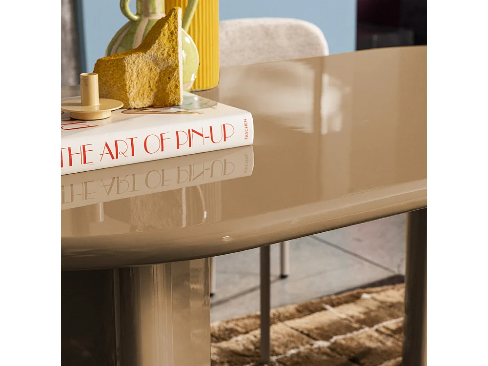 Glossi - Table à manger 6 personnes ovale en bois laqué - Marron
