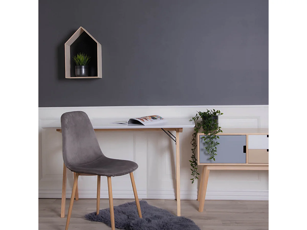 GRAM - Bureau Blanc et Piétement Hévéa Massif Naturel