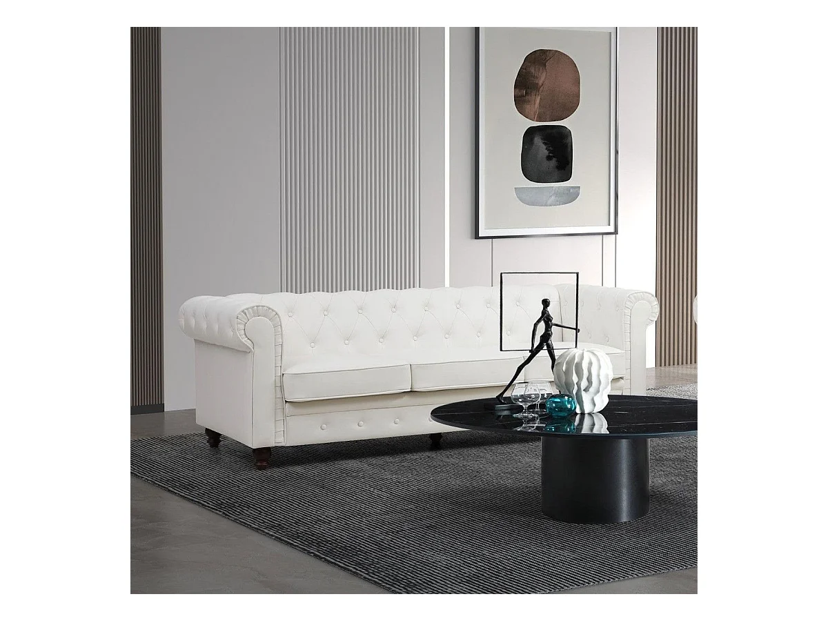 Canapé 3 Places "Chesterfield" 209cm Blanc