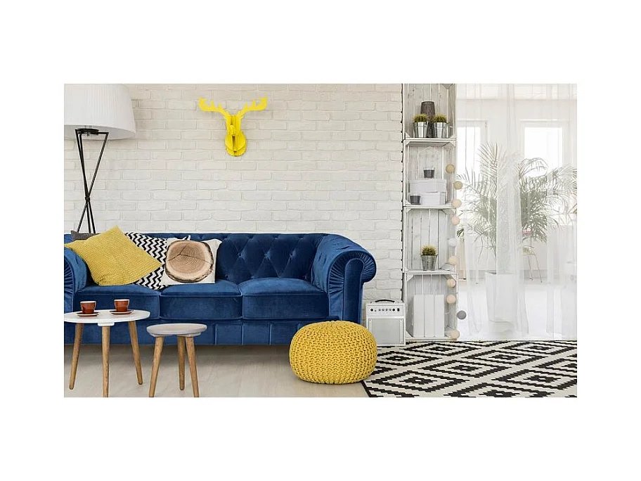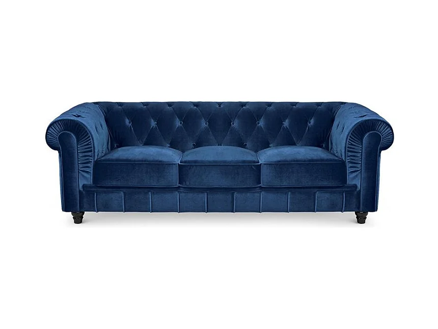 Canapé 3 Places Velours "Chesterfield" 207cm Bleu