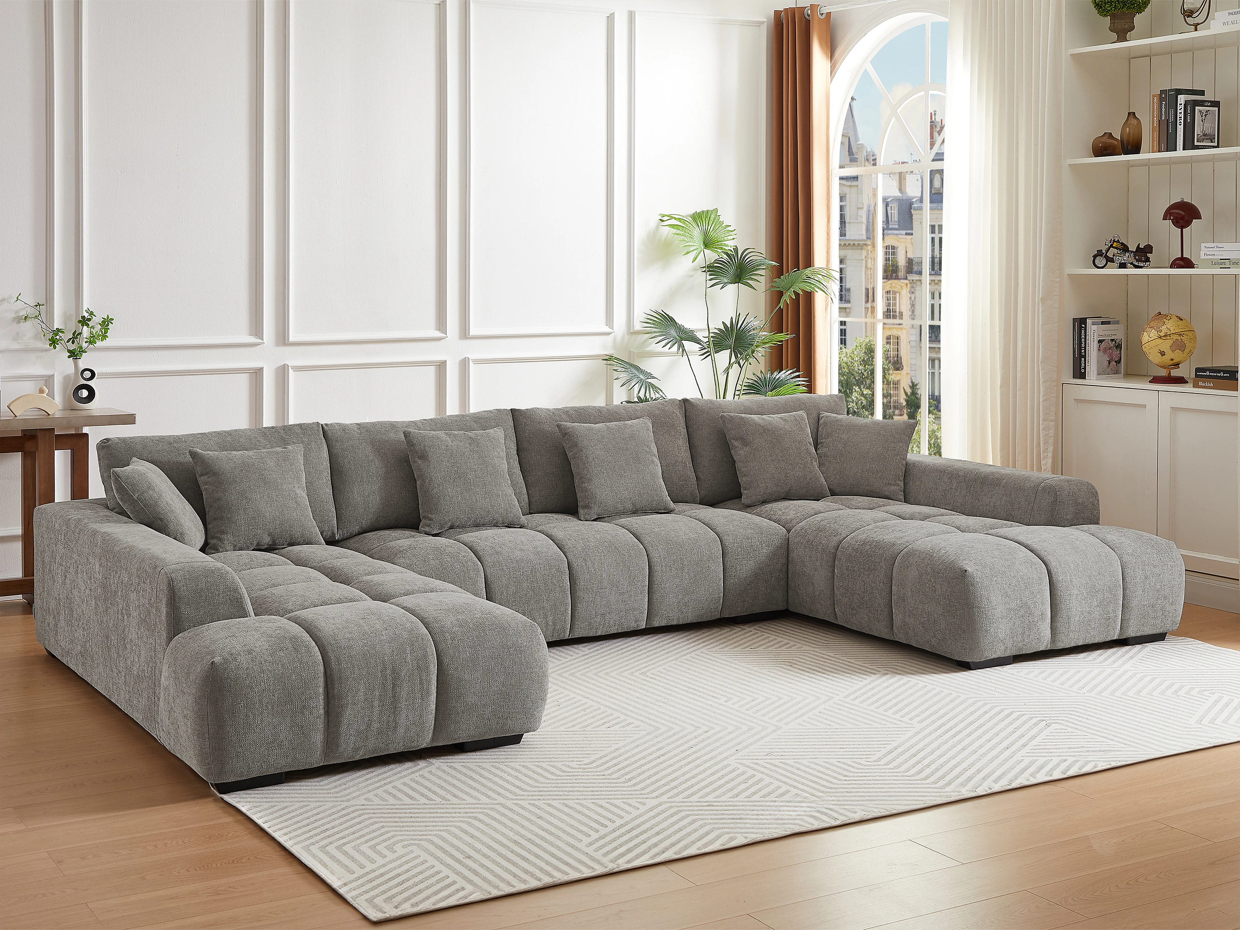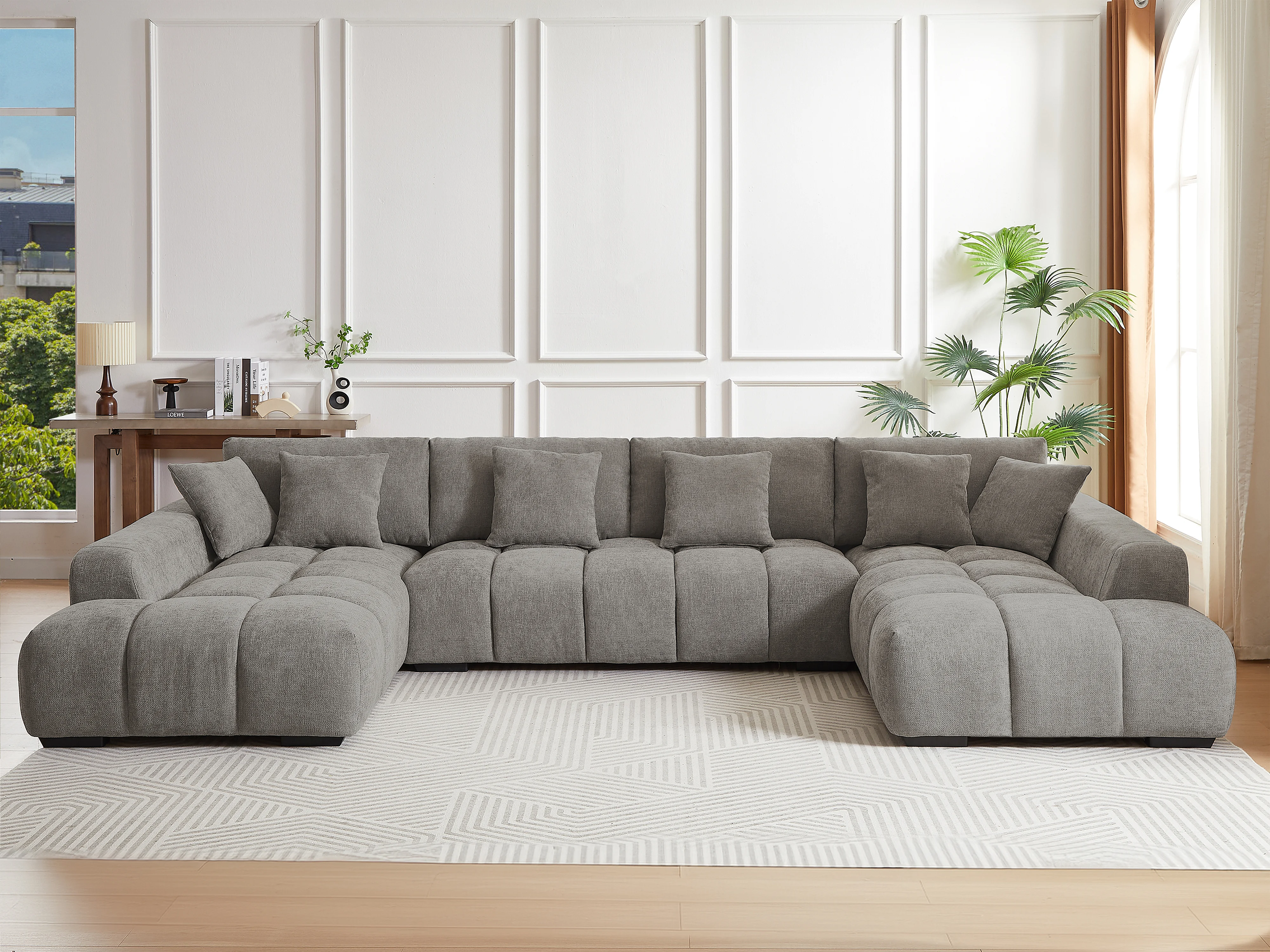 Grand canapé d'angle panoramique en tissu texturé gris BERENIA