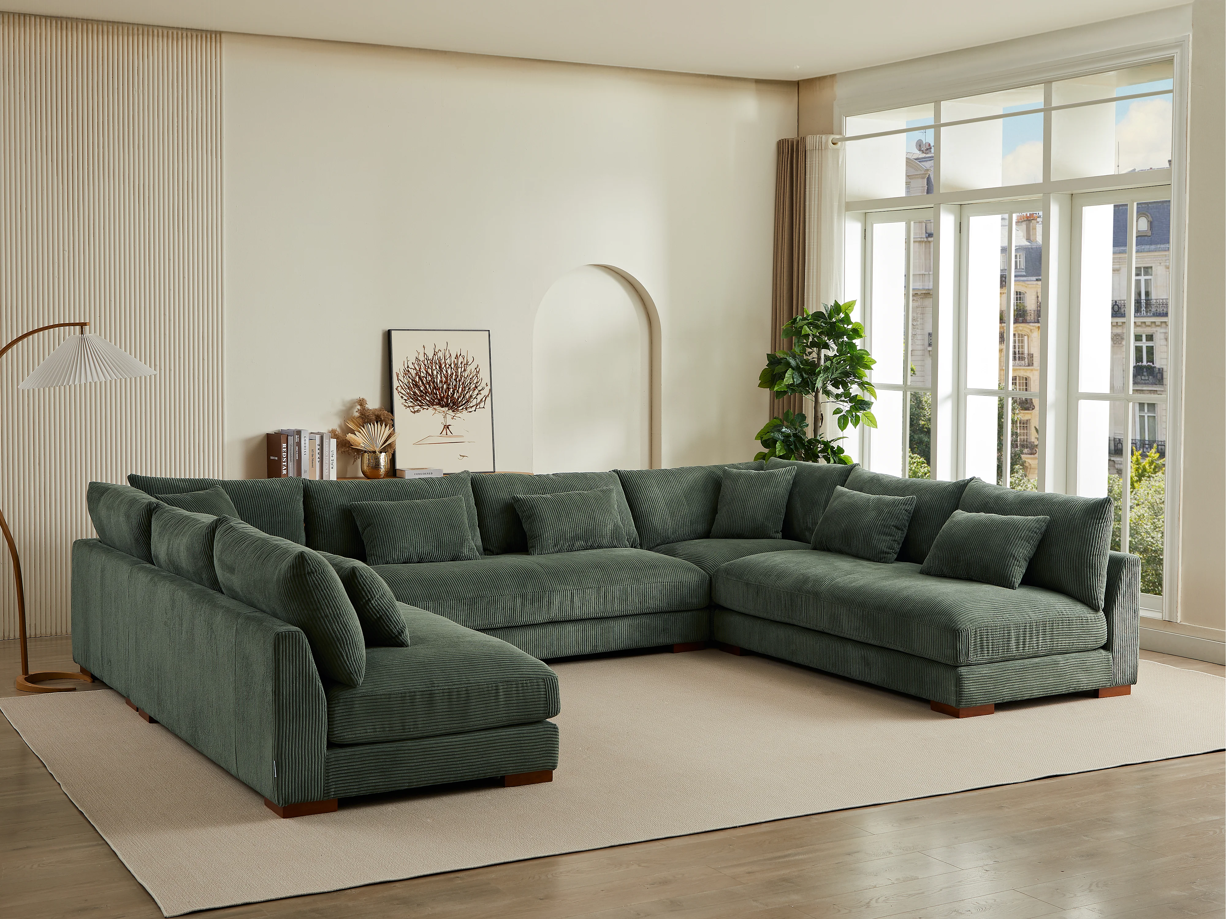 Grand canapé d'angle panoramique en velours côtelé vert SPERONE de Pascal Morabito