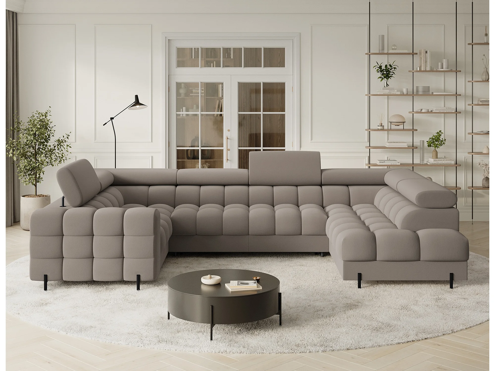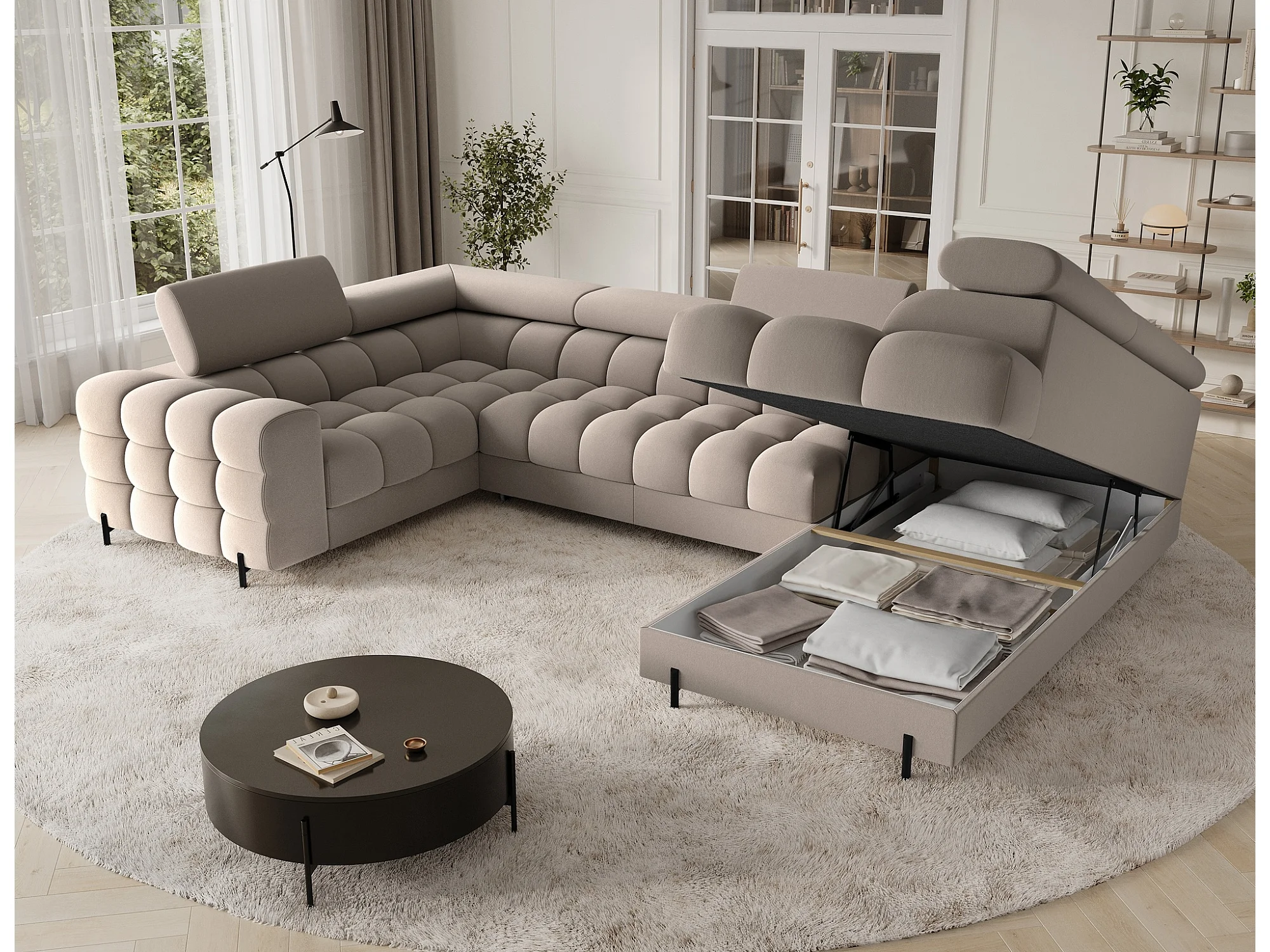 Grand canapé en U en tissu KARBON – Avec fonction lit et coffre-Taupe-Méridienne A droite