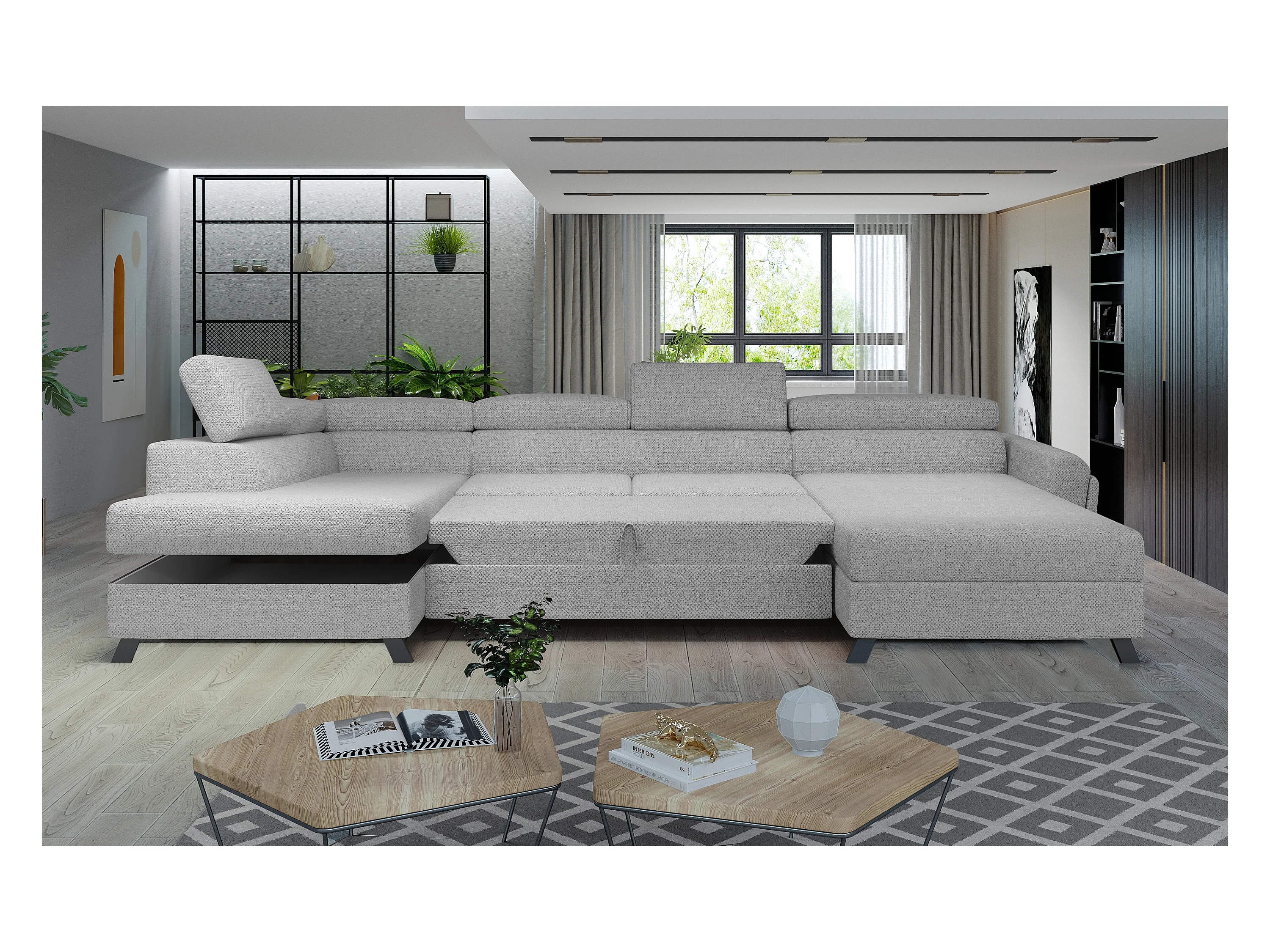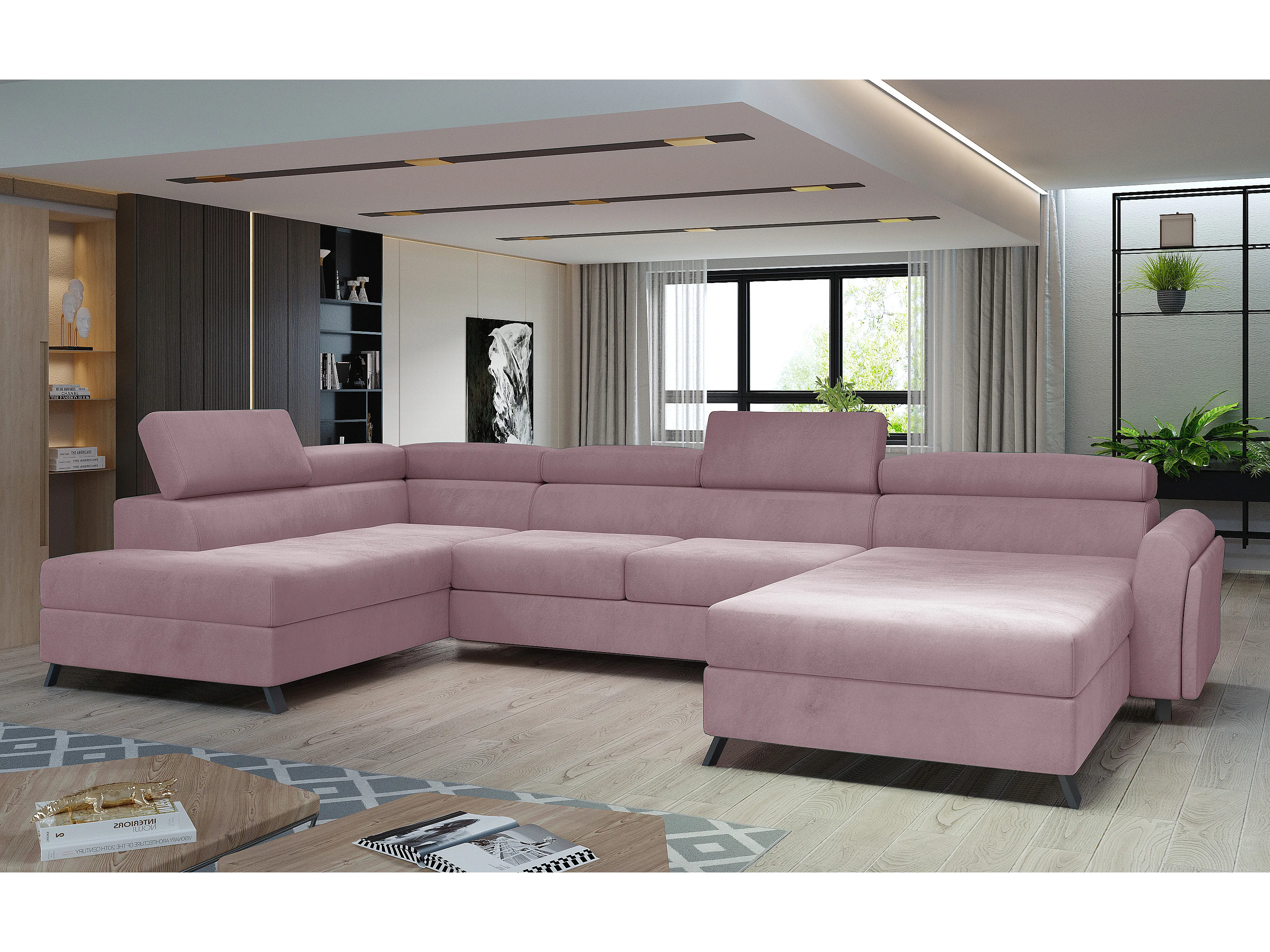 Grand canapé panoramique convertible velours rose avec coffre Konba 370cm-Coffre de rangement à gauche