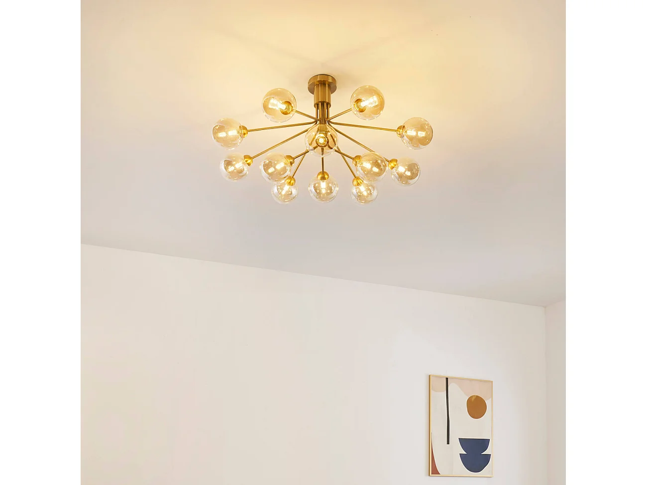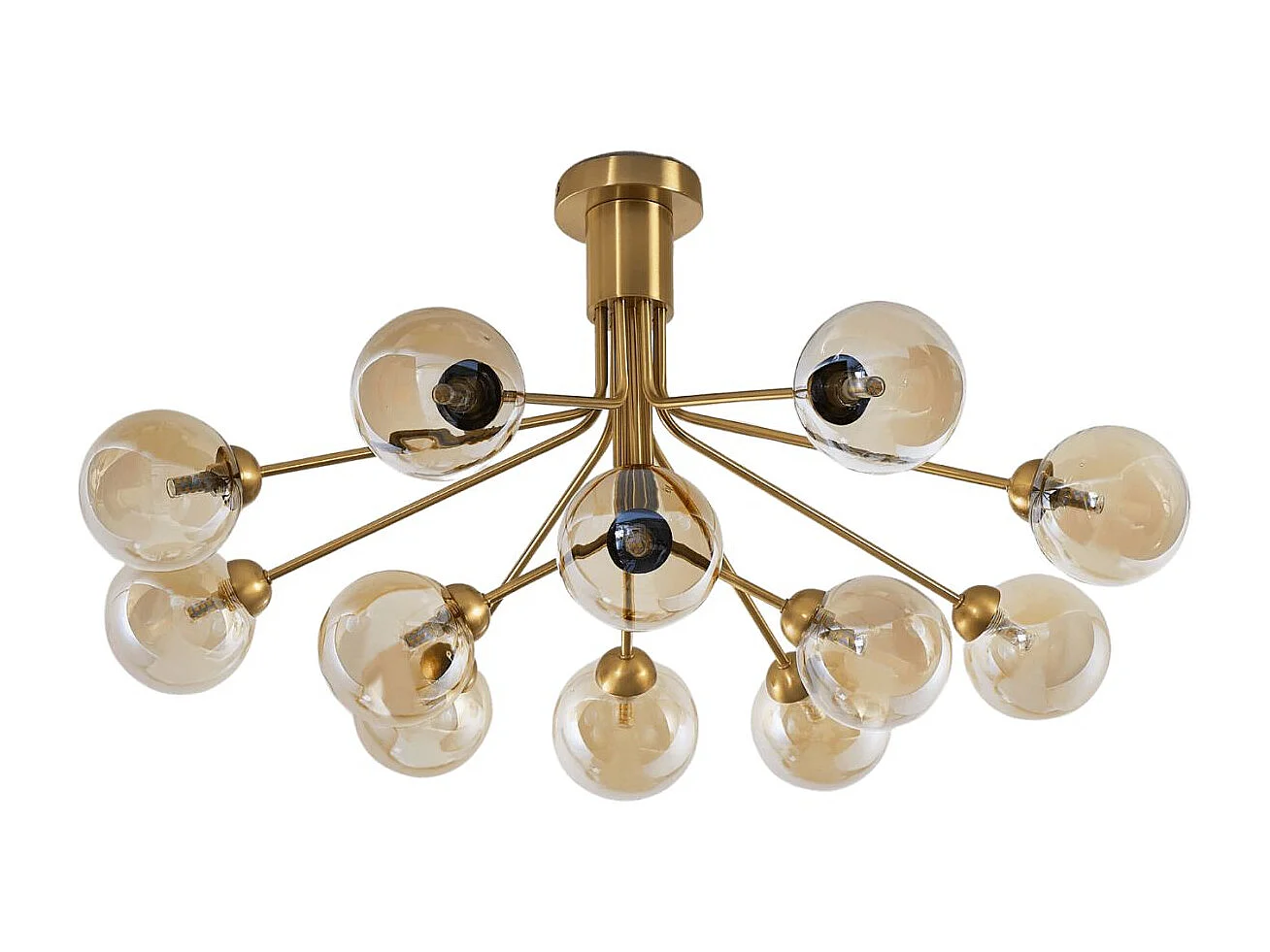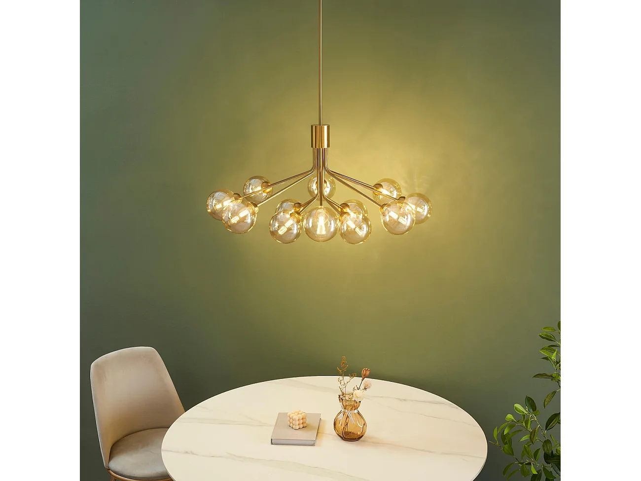 Grand lustre élégant laiton 12 boules ambrées - Audrey