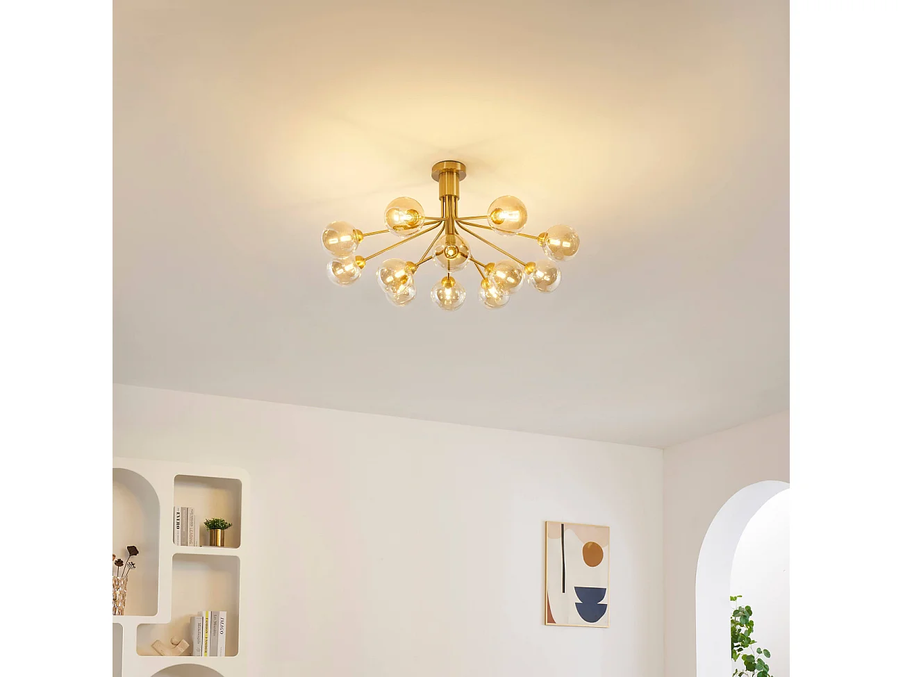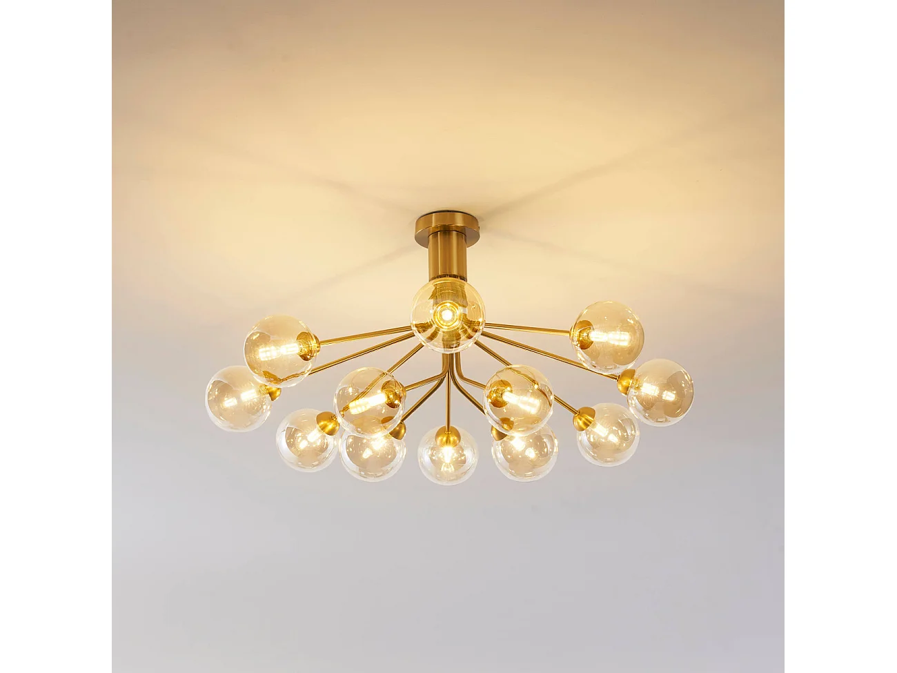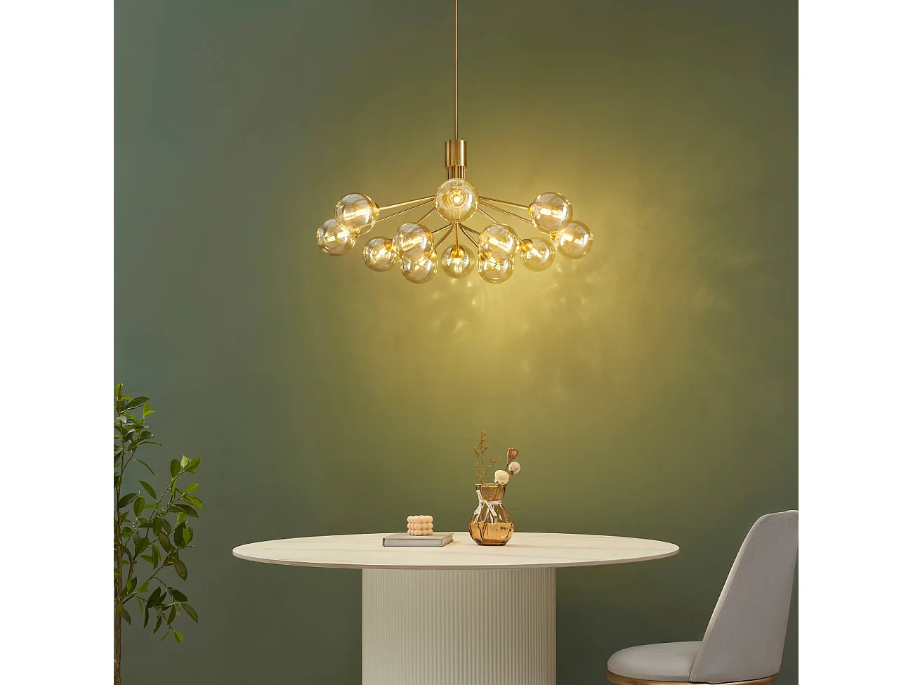 Grand lustre élégant laiton 12 boules ambrées - Audrey