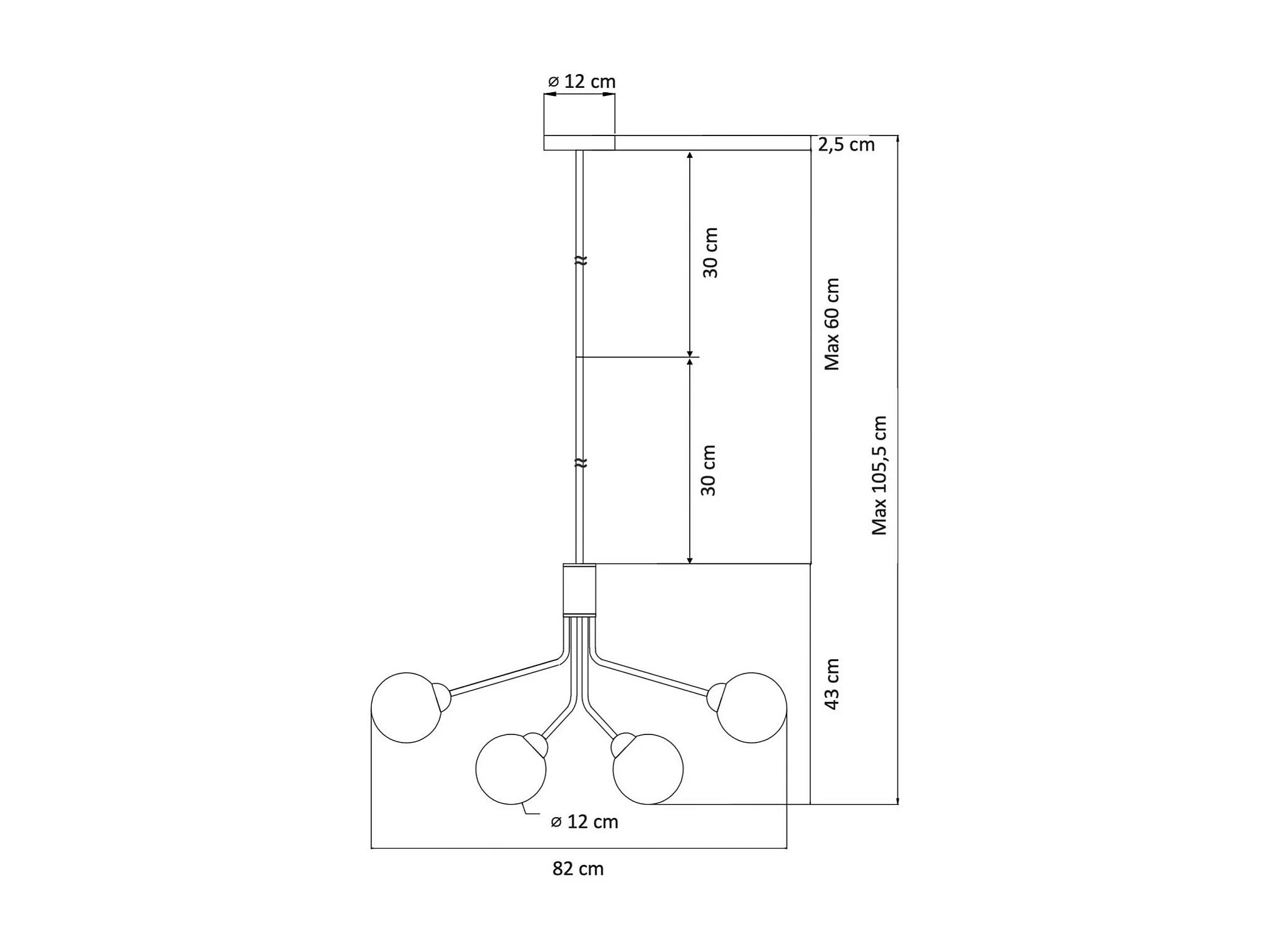 Grand lustre élégant laiton à 12 boules - Audrey