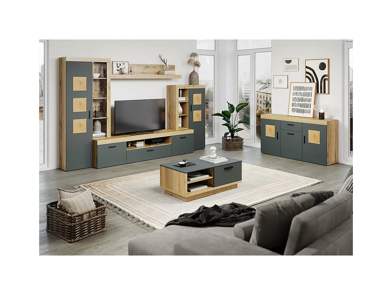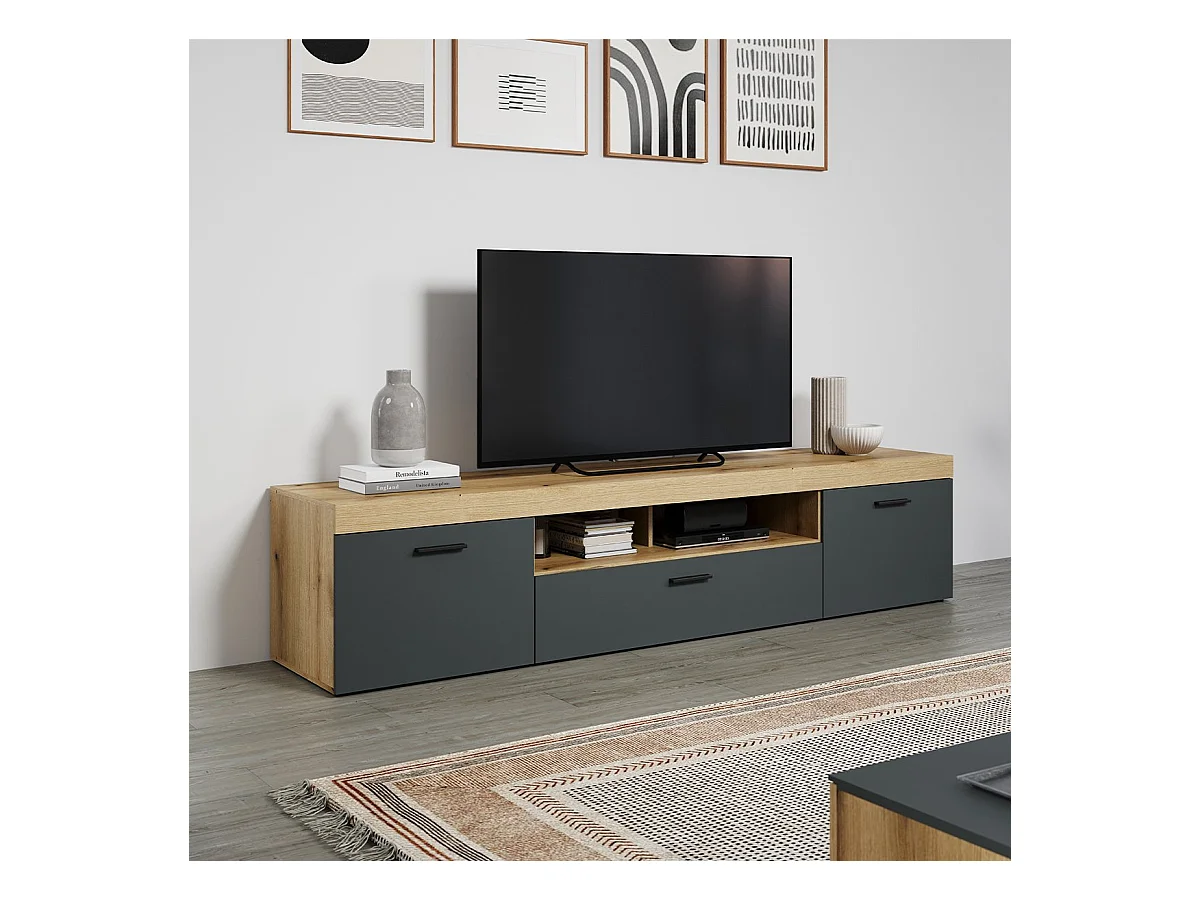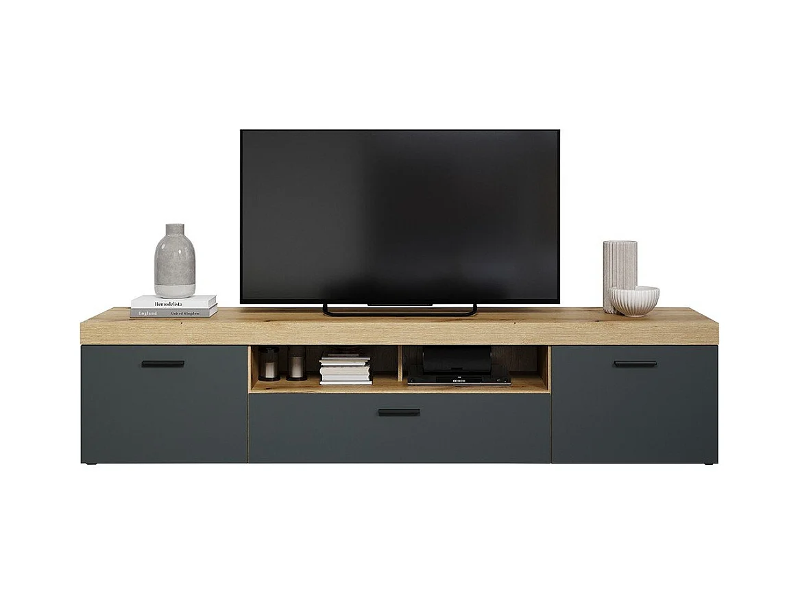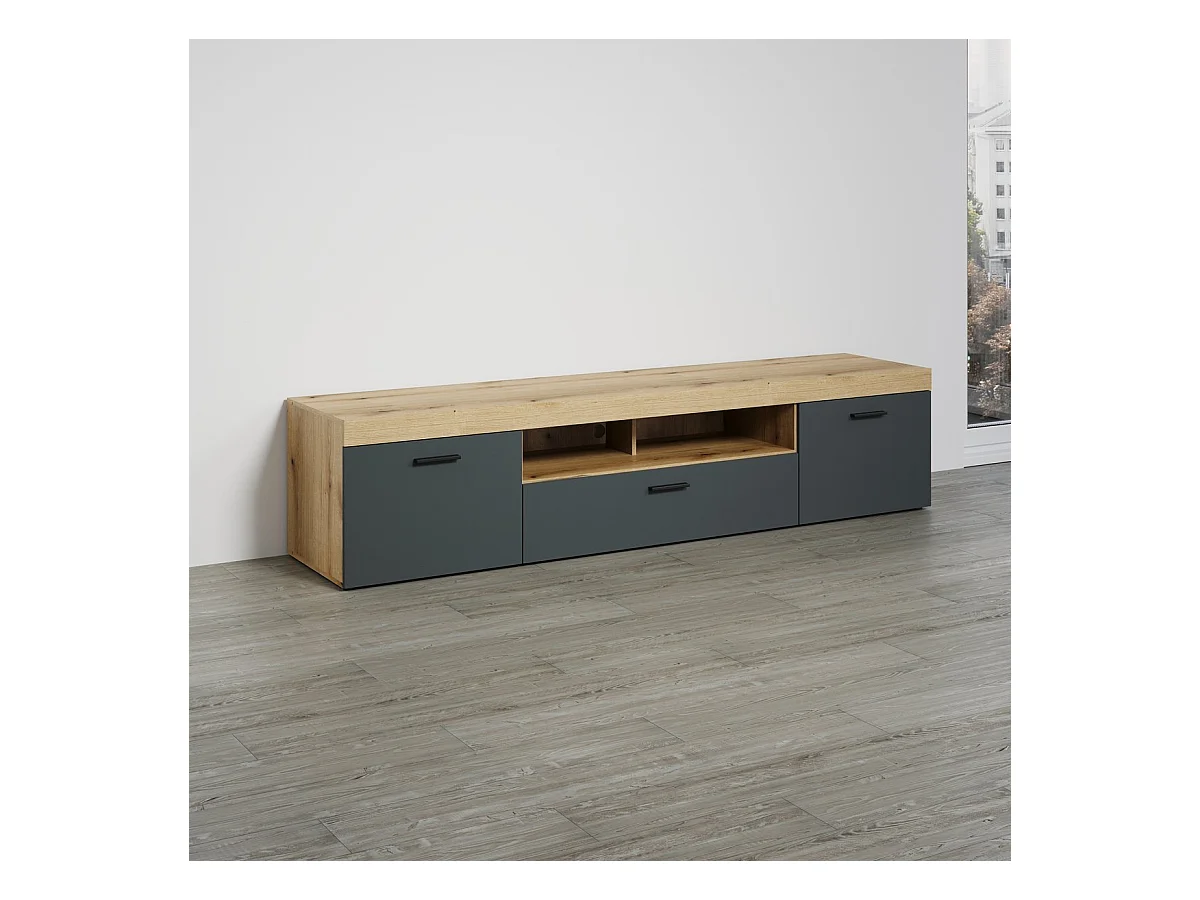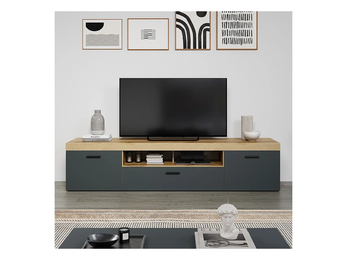 Grand meuble TV 2 portes, 1 abattant et 1 niche L230 cm - TYLER