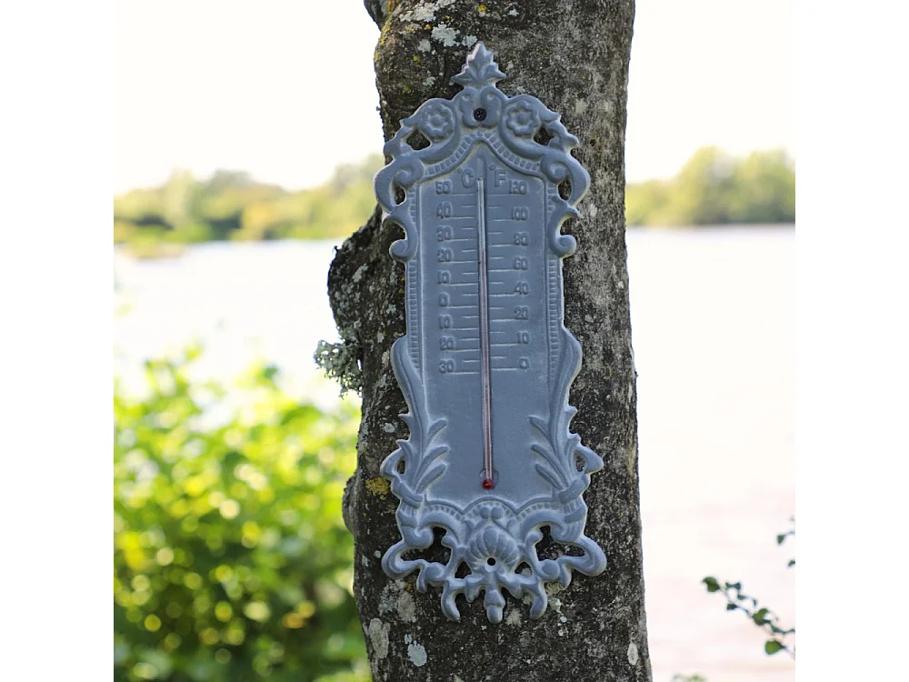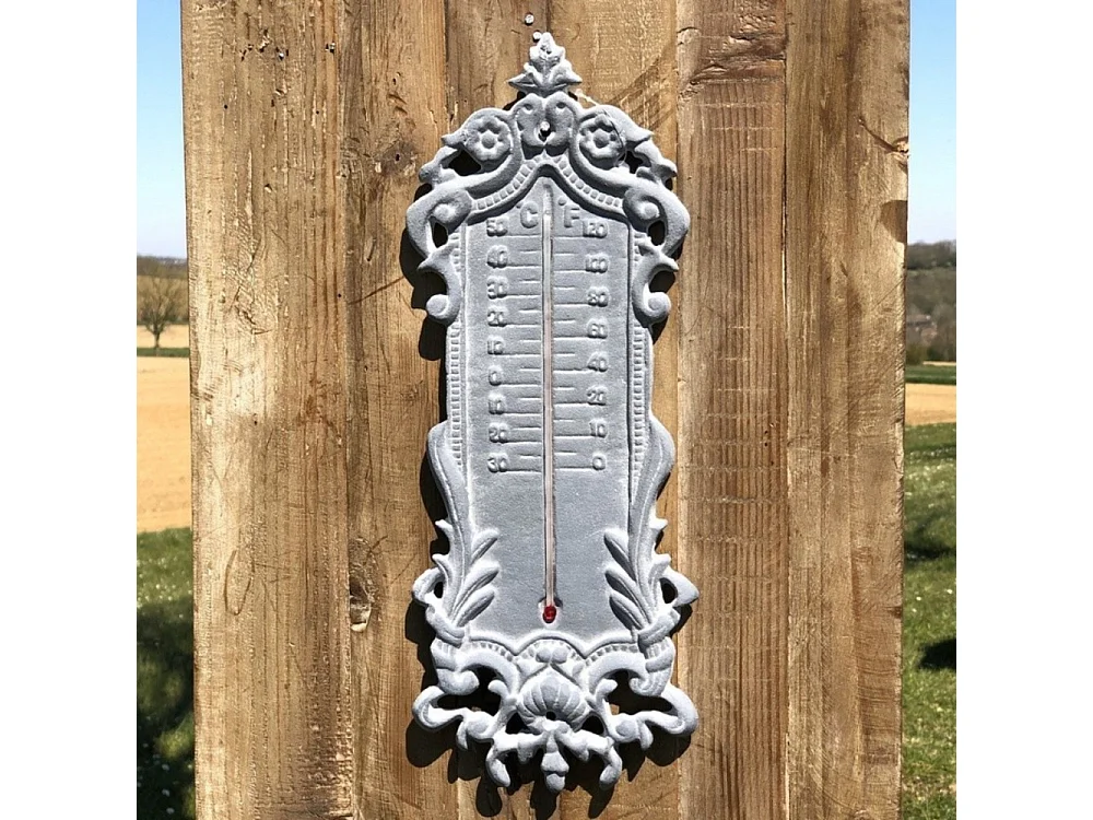 Grand thermomètre extérieur décoratif vintage fonte grise 37cm