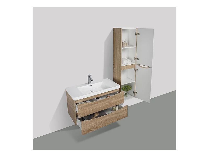 Grande armoire de rangement PIACENZA hauteur 150 cm chêne clair