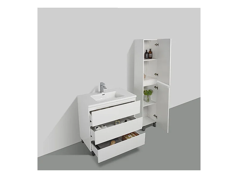 Grande armoire de rangement VERONA hauteur 176 cm blanc laqué