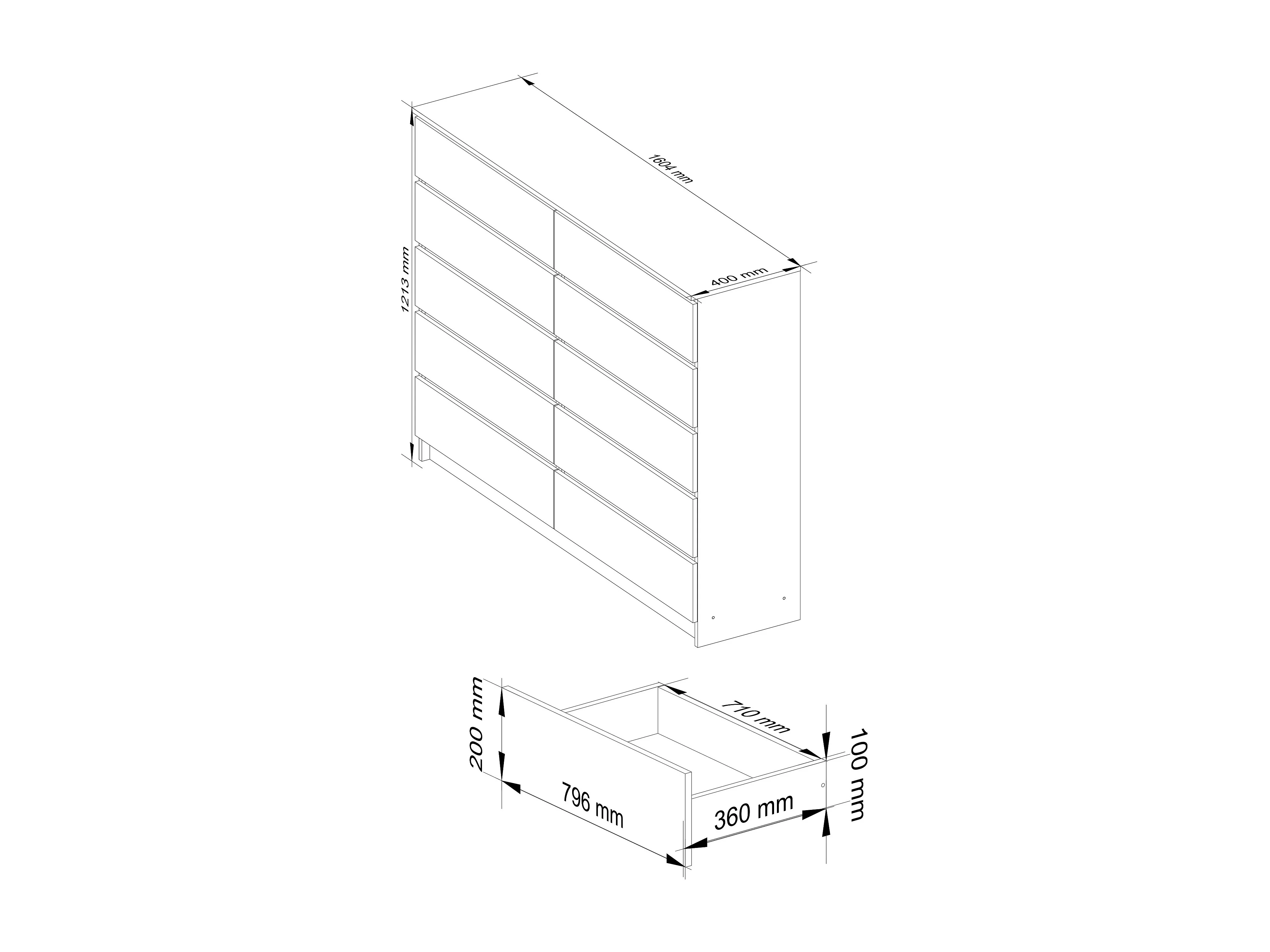 Grande Commode pour le salon AKORD K160 Blanche 160 cm 10 tiroirs façade Chêne Sonoma 160x40x121 cm