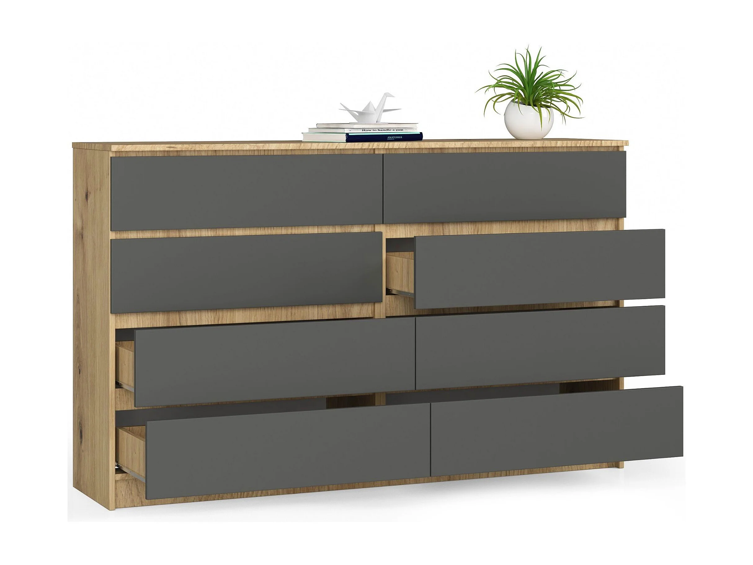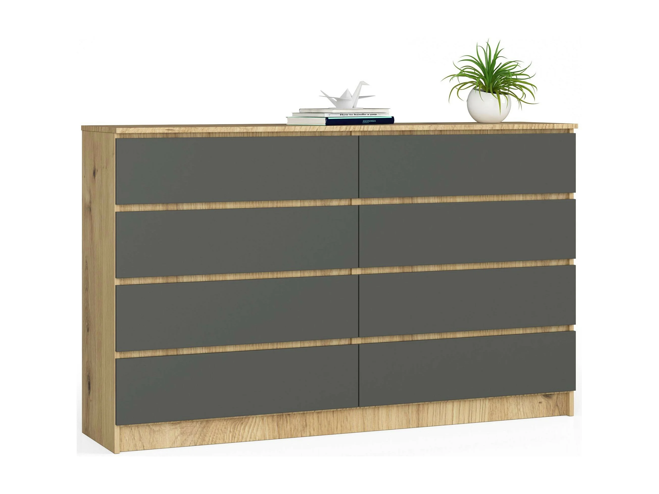 Grande Commode pour le salon AKORD K160 Chêne Artisan 160 cm 8 tiroirs façade Gris Graphite 160x40x99 cm