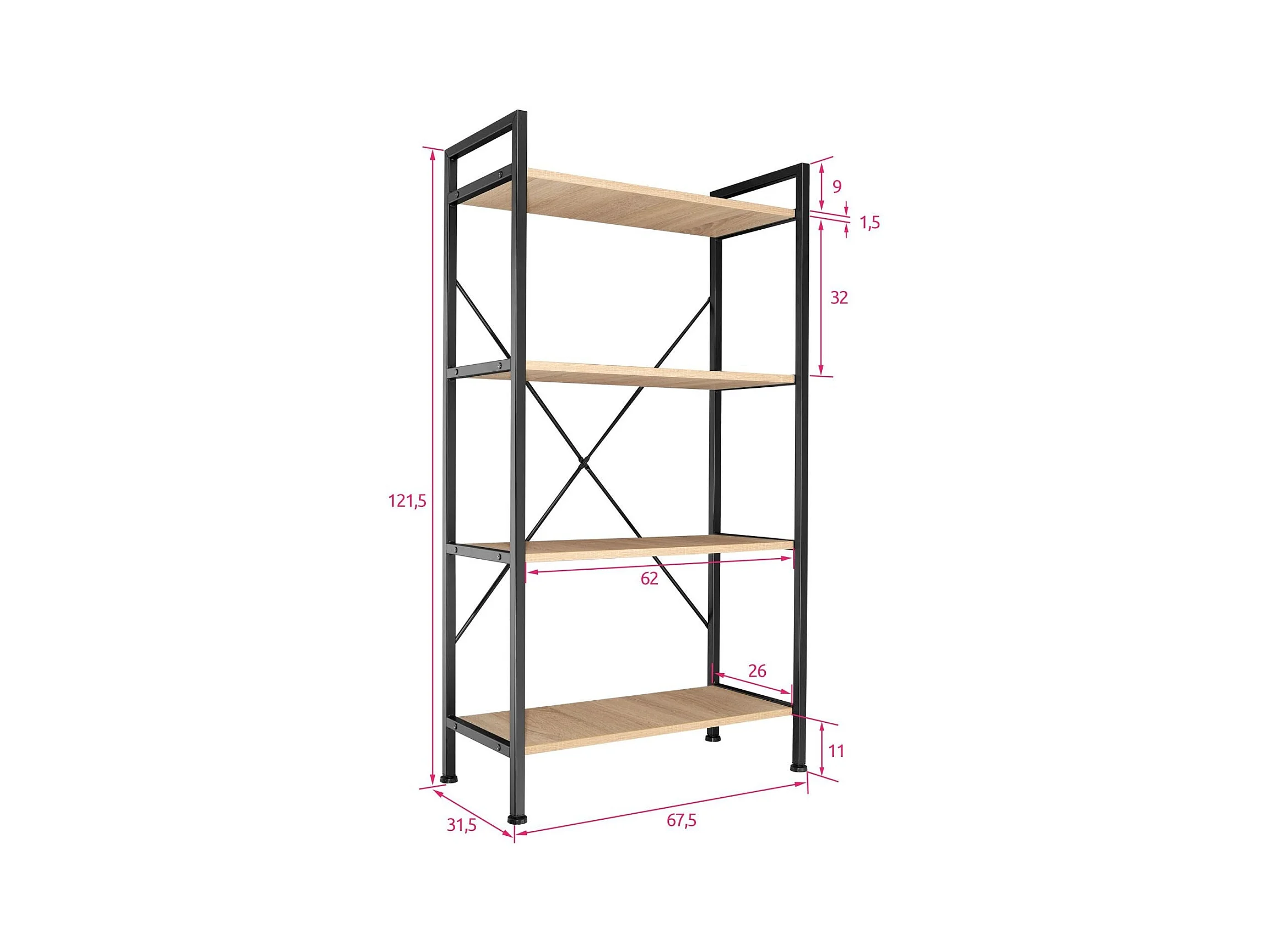 Bibliothèque avec 4 étagères - couleur chêne huilé - 107cm - LIVIO