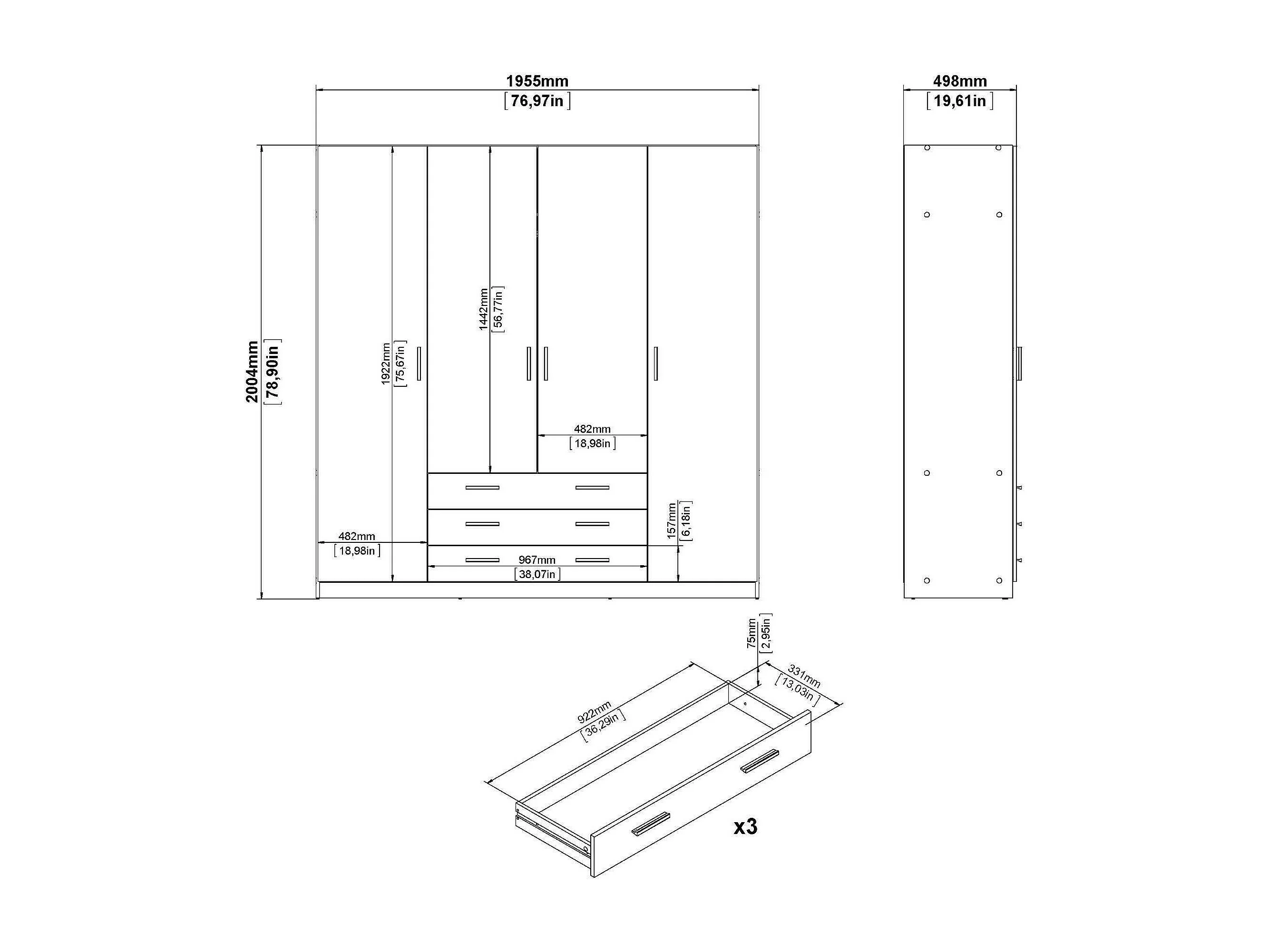 Grande Garde-robe Dserafin, Meubles de chambre, Penderie de plain-pied, Placard à vêtements, 196x50 h200 cm, Gris