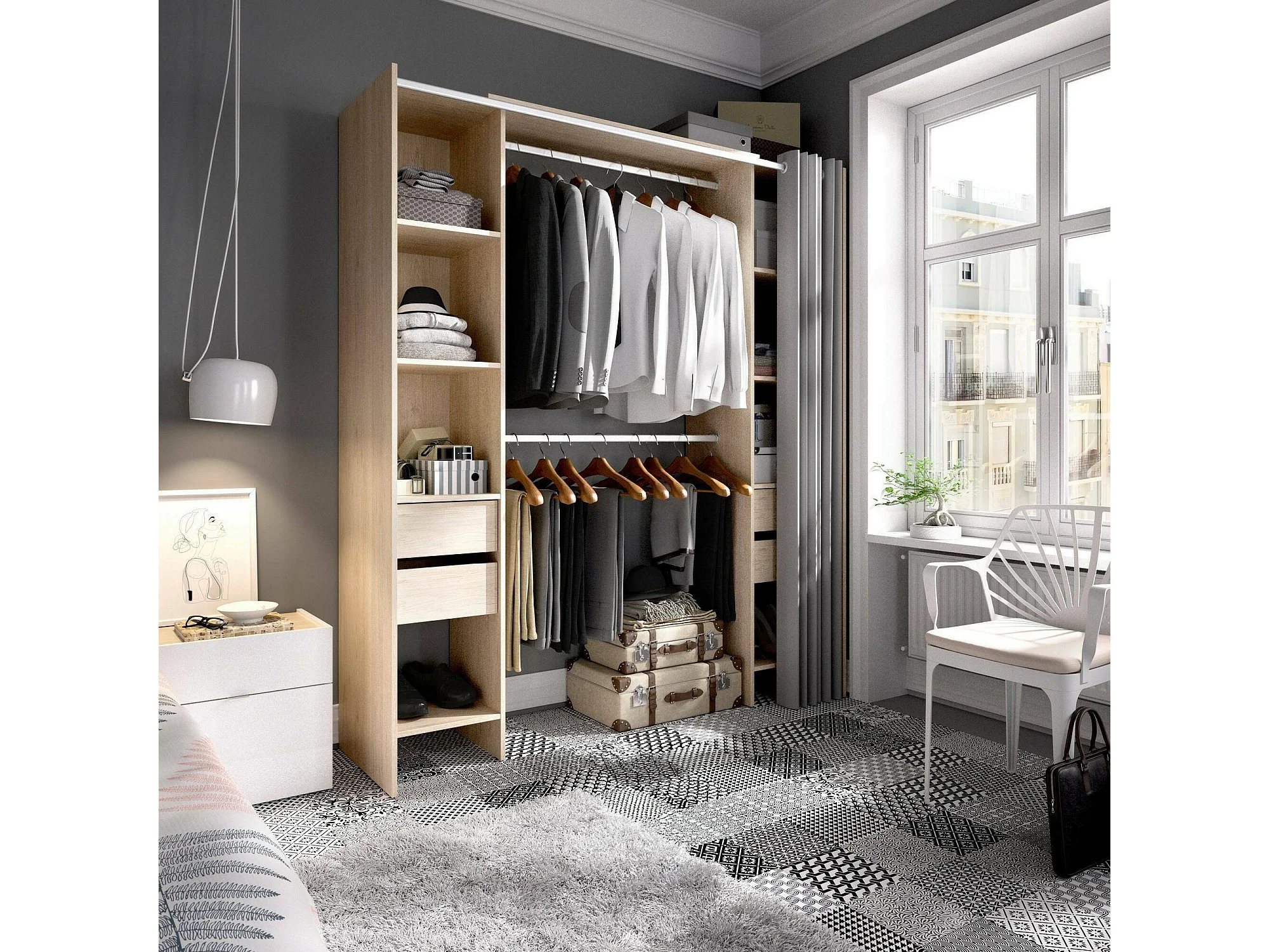 Grande Garde-robe Dstrak, Meubles de chambre, Penderie de plain-pied, Placard à vêtements, 180x50 h205 cm, Chêne clair