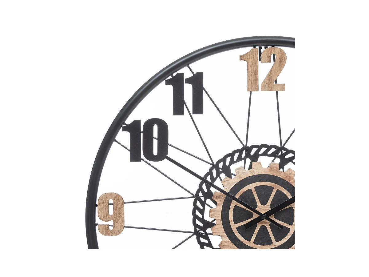 Grande Pendule murale silencieuse en Métal et Bois D 90 cm