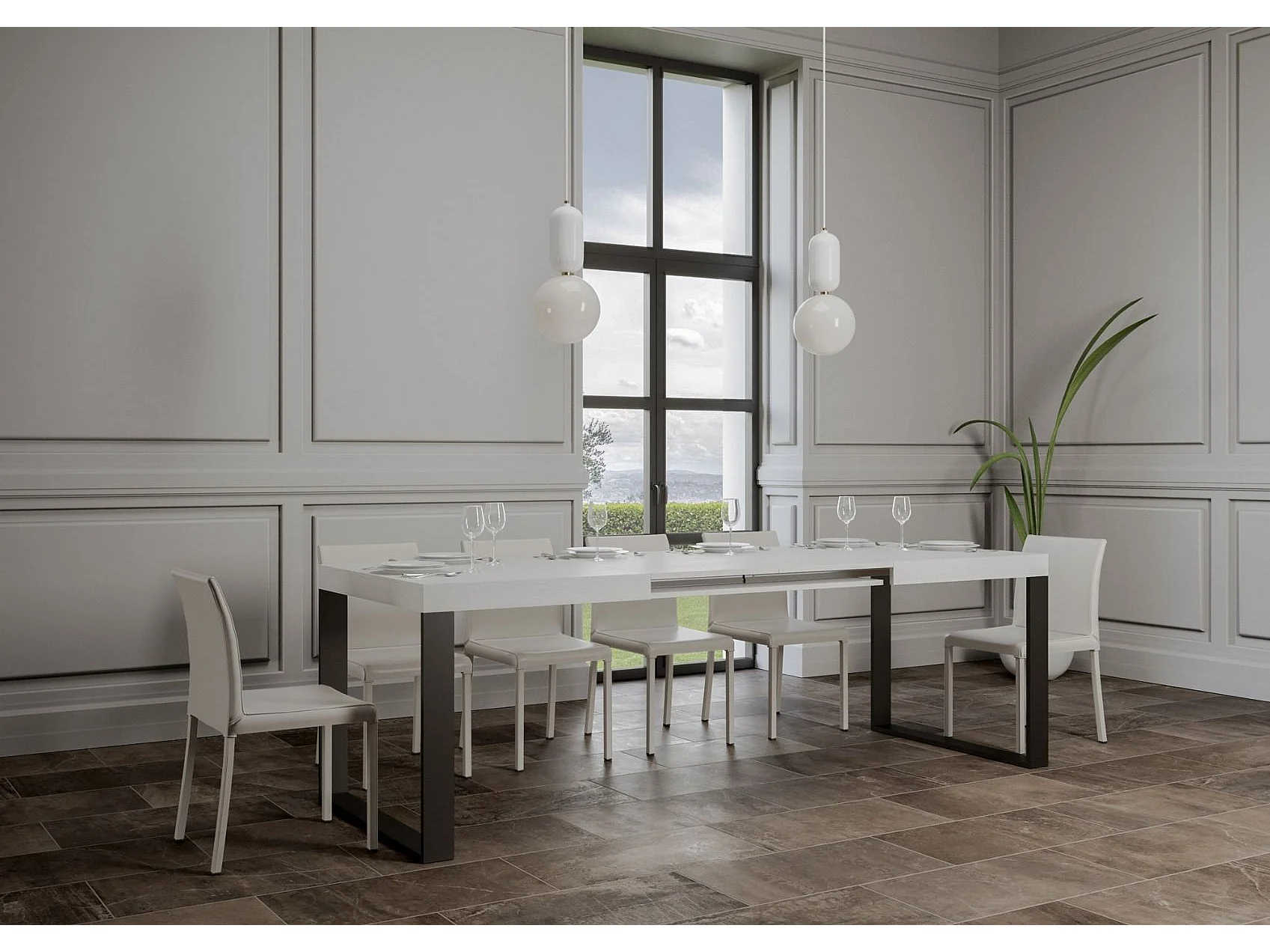 Grande table extensible 180 à 440cm blanche et pieds métal anthracite Tiroz-Support 2 pieds-5 rallonges épaisses