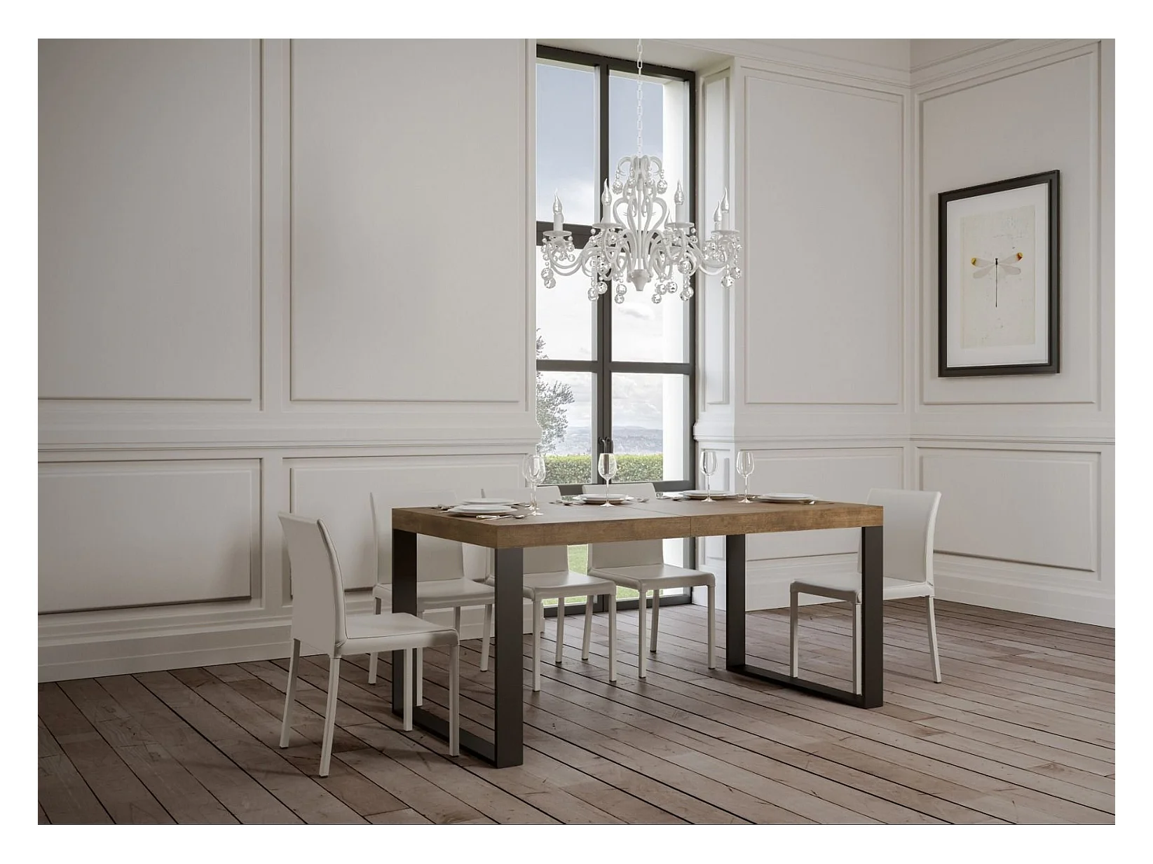 Grande table extensible 180 à 440cm bois marron et pieds métal anthracite Tiroz-Support 2 pieds-5 rallonges épaisses