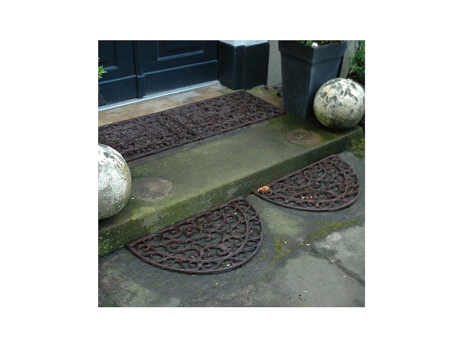 Paillasson demi-lune en fonte avec finition antique L68.5xPR32xH1.5cm - Paillasson d'extérieur