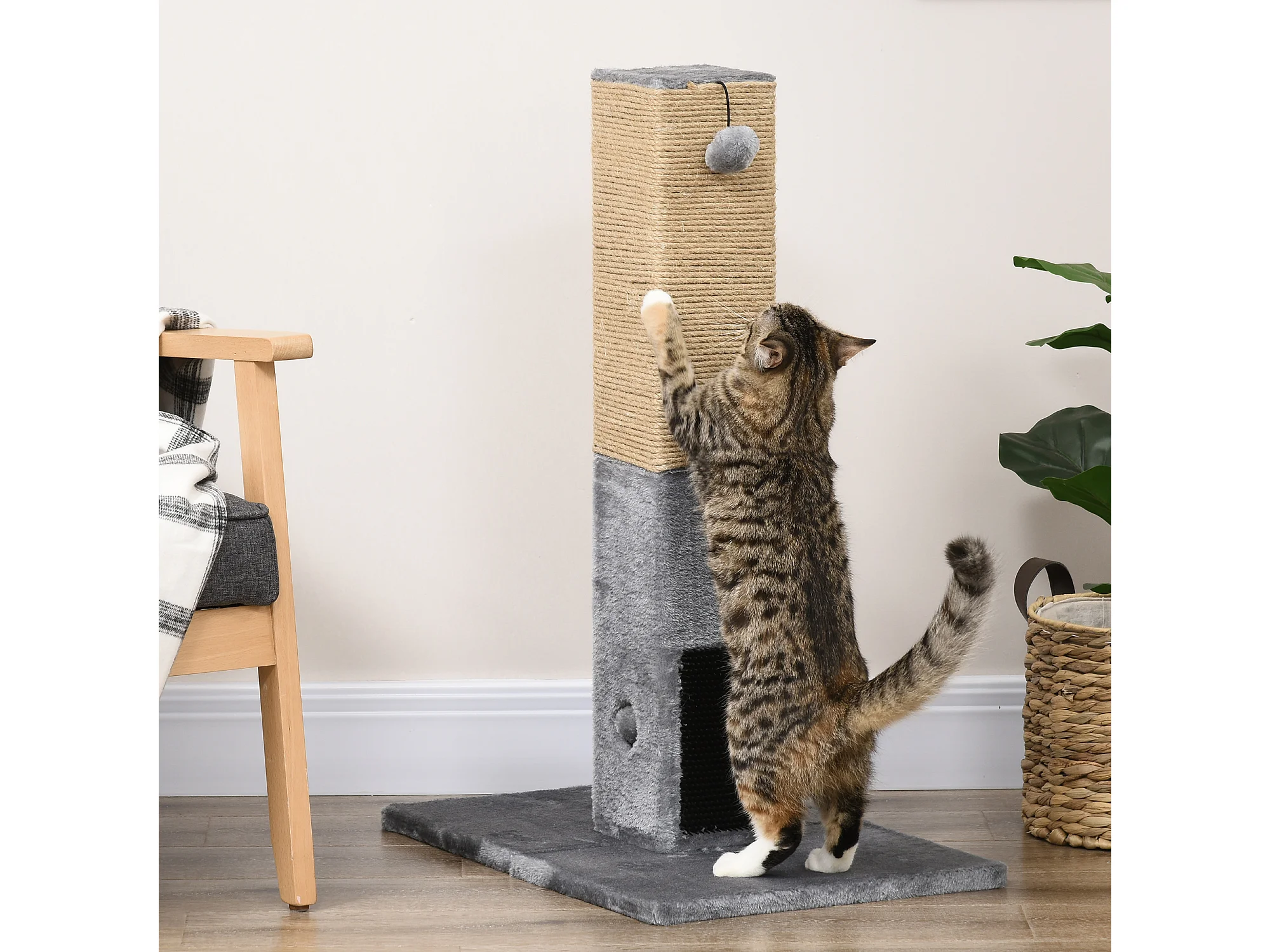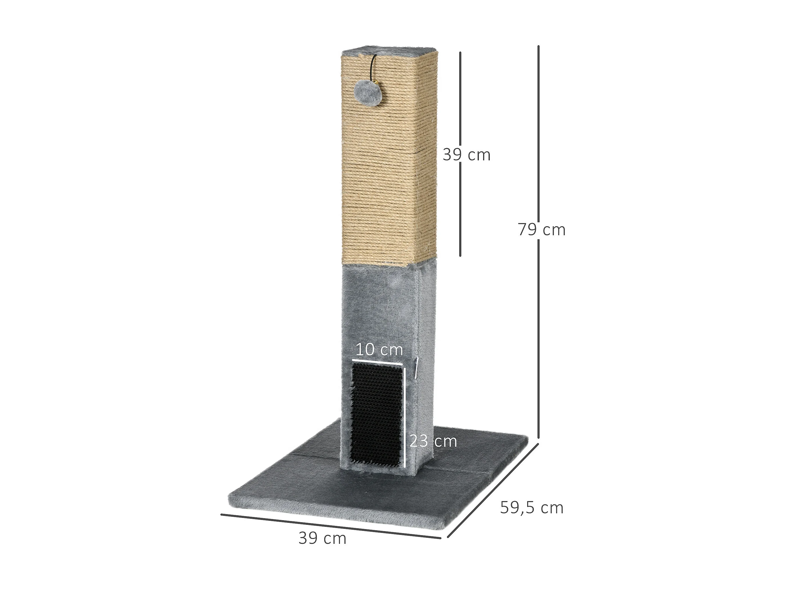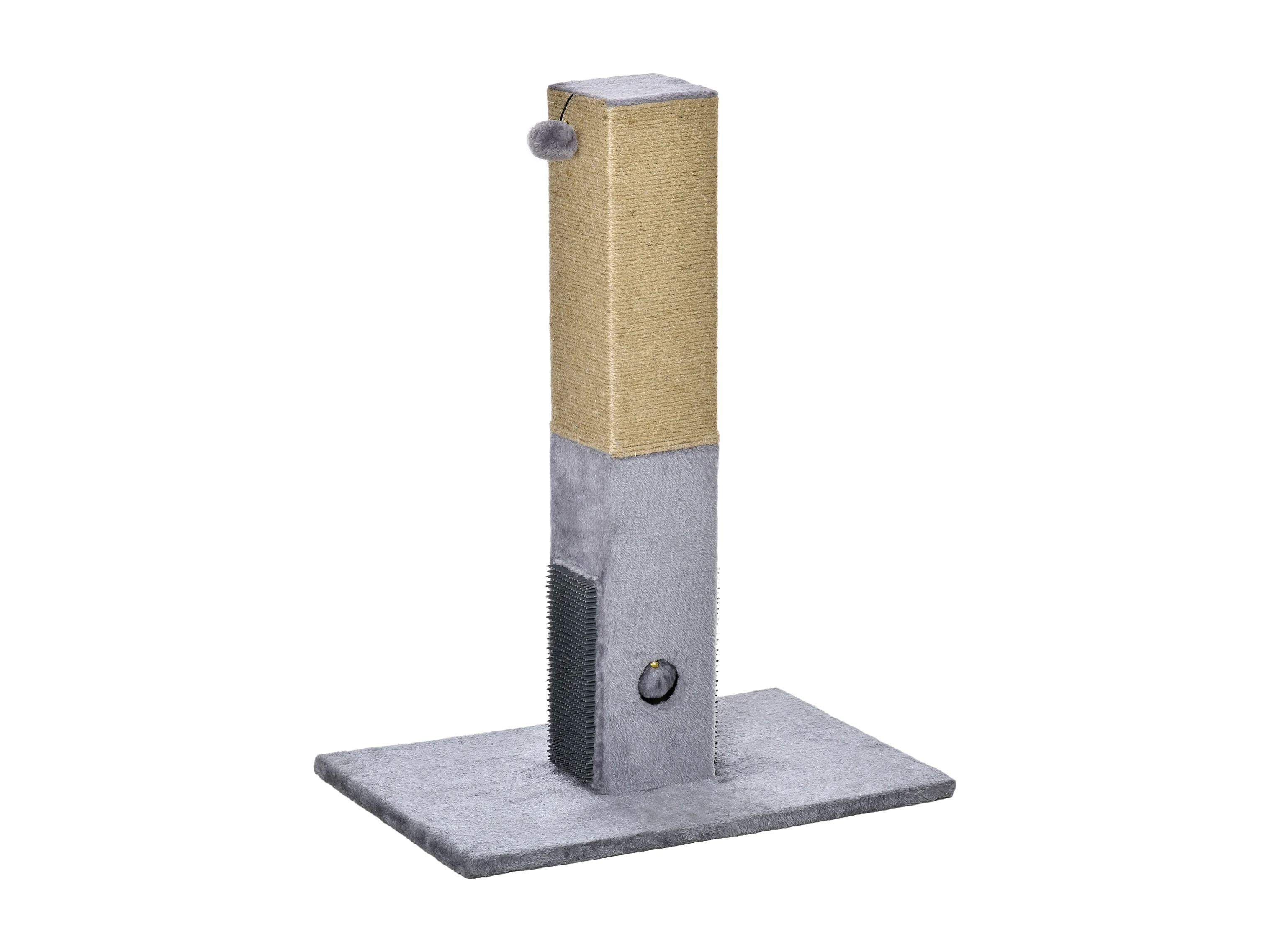 Griffoir chat H.79 cm - jeu boule suspendue et boule clochette, 2 bandes massantes - gris