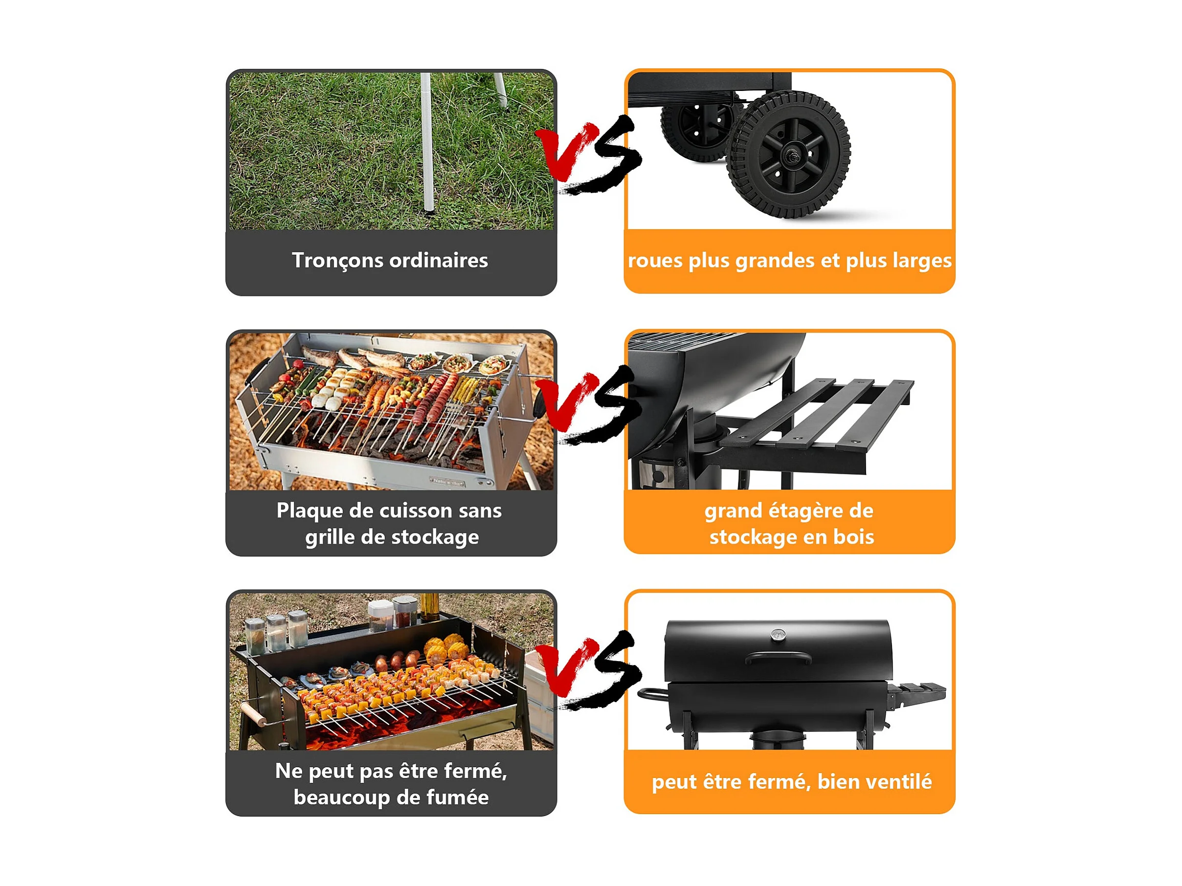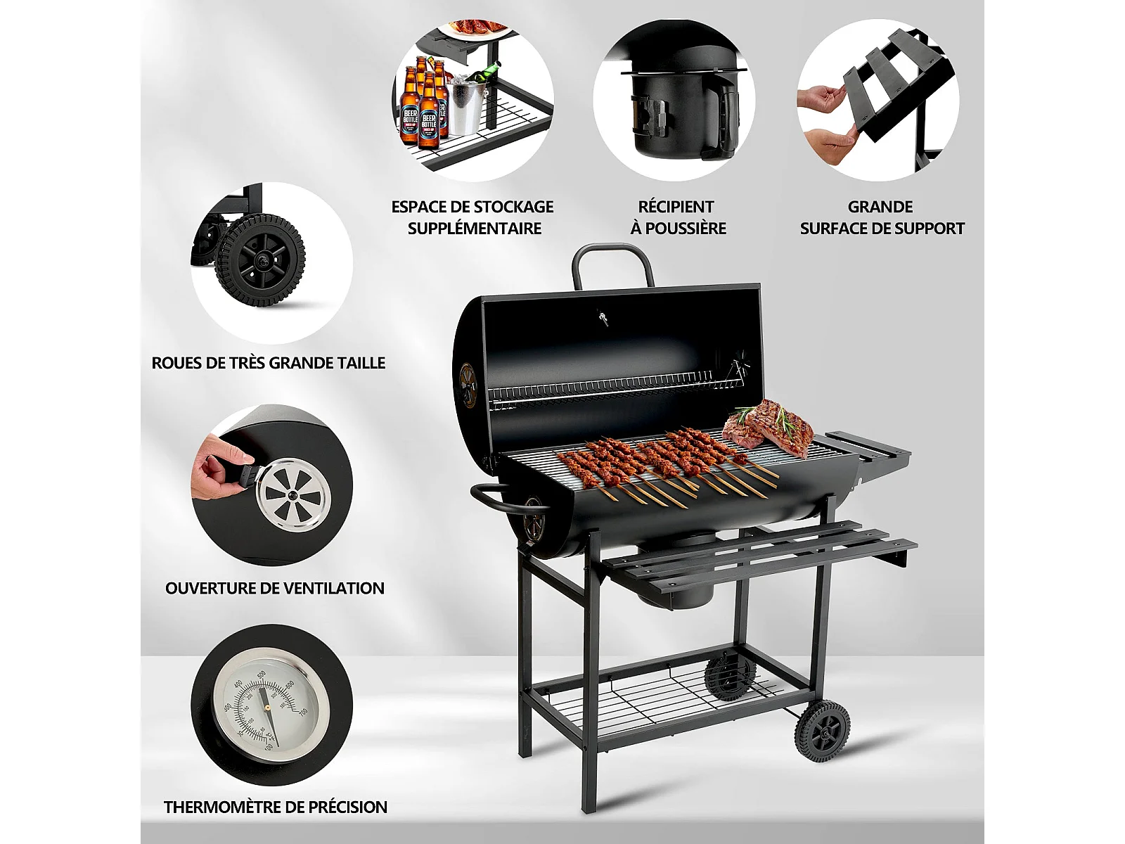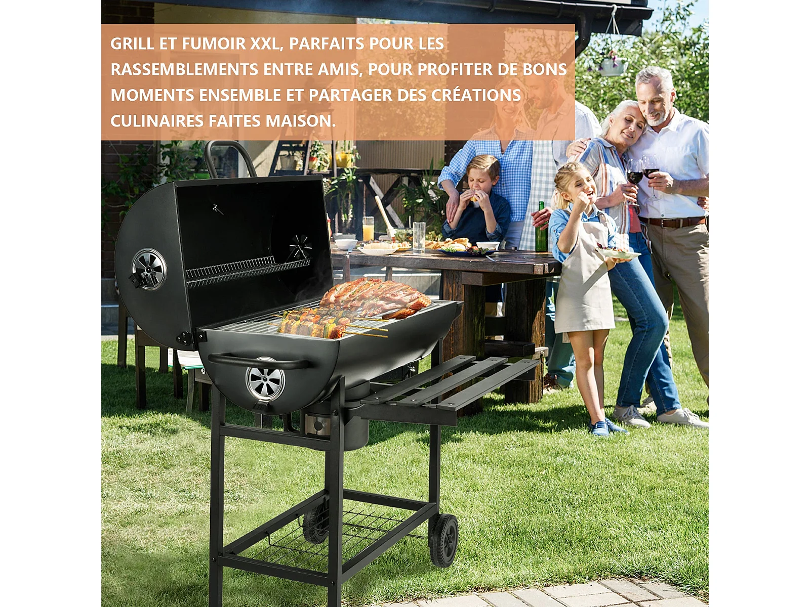 Chariot XXL pour barbecue au charbon de bois, grand fumoir