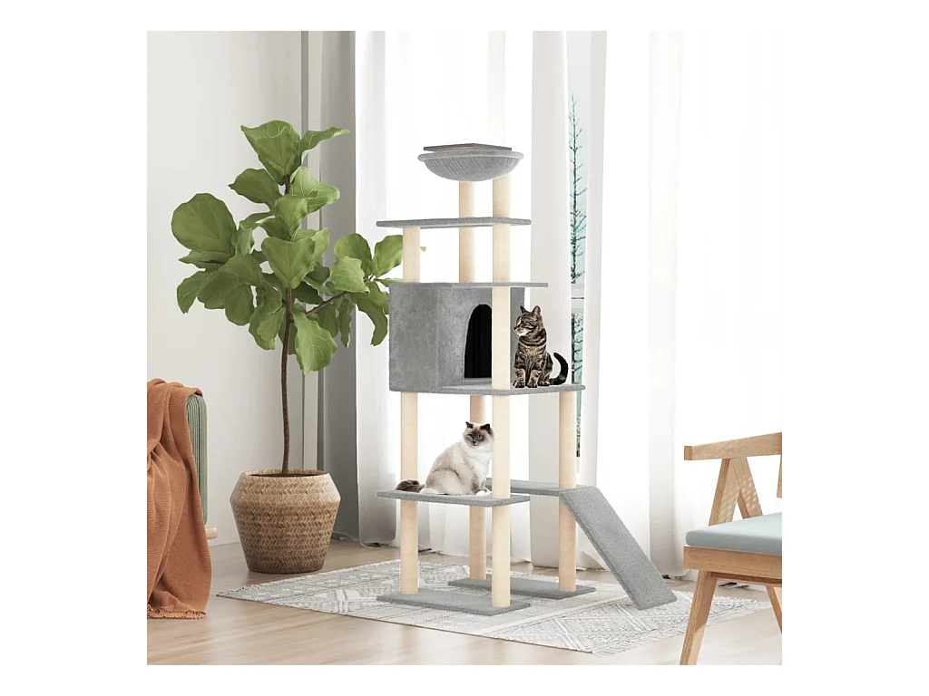 Grimhel Arbre à chat avec griffoirs en sisal Gris clair 166 cm