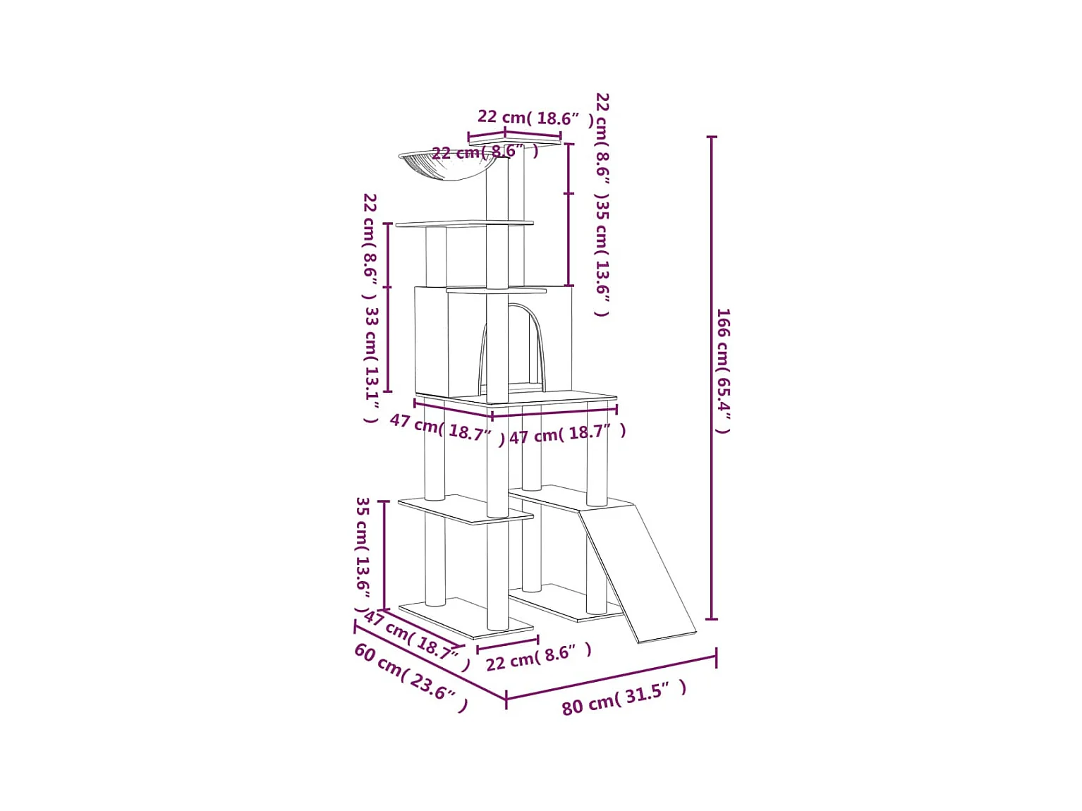 Arbre à chat avec griffoirs en sisal Gris foncé 166 cm OFR50260 BonneVie Meuble