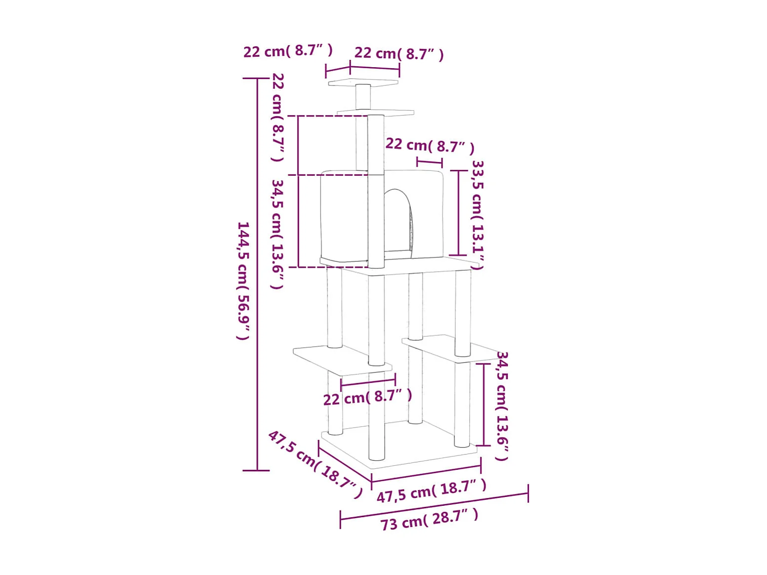 Arbre à chat avec griffoirs en sisal gris foncé 50,5 cm RG3Q15224