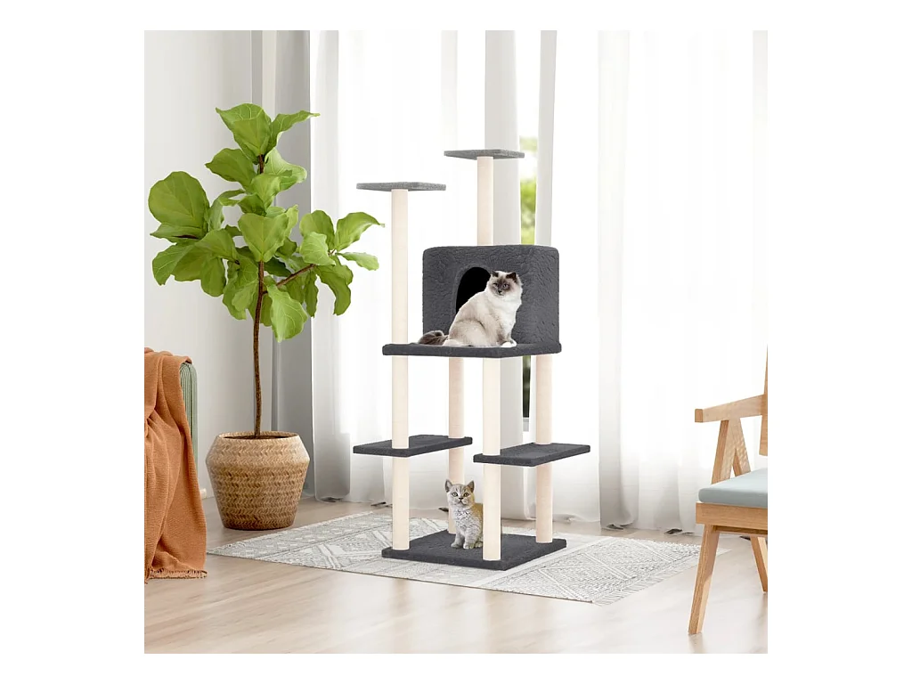 Arbre à chat avec griffoirs en sisal Gris foncé 144,5 cm OFR88806 BonneVie Meuble