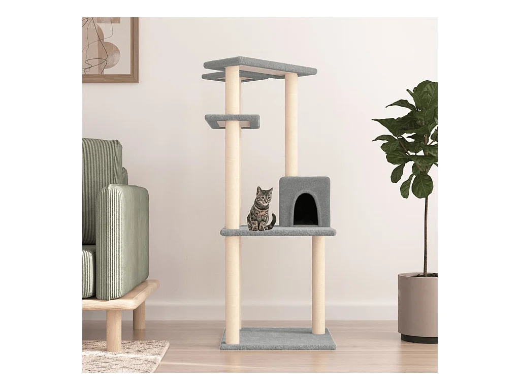 Gudleikr Arbre à chat avec griffoirs en sisal gris clair 123 cm